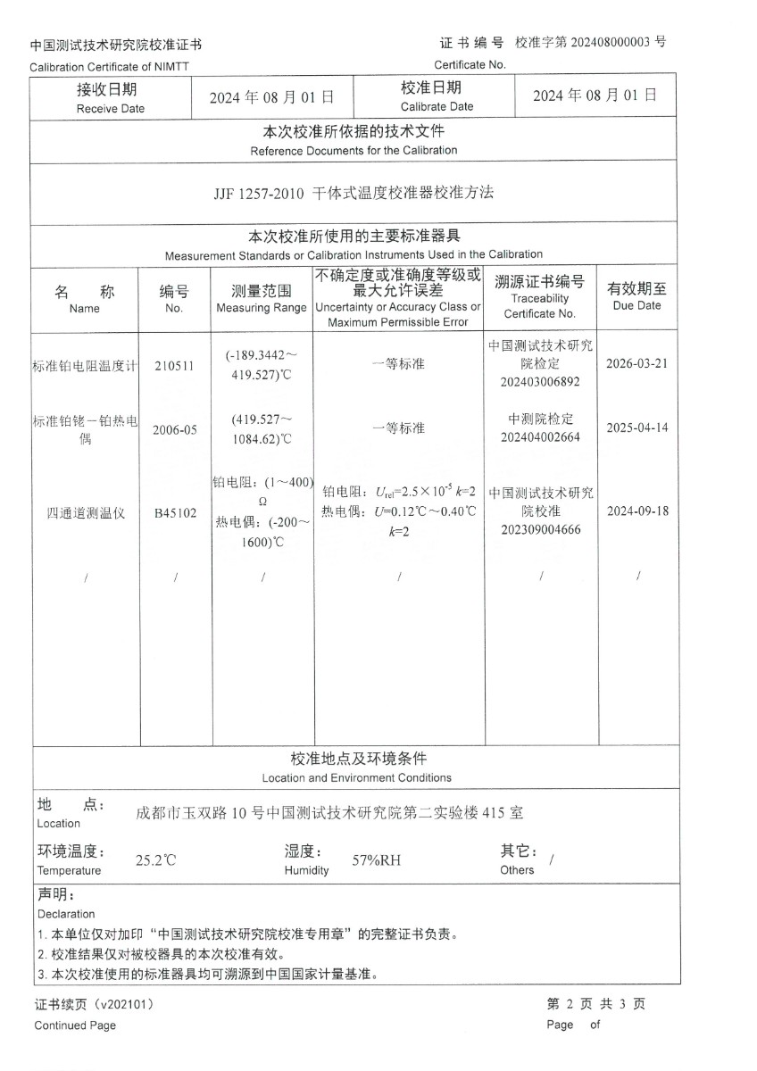 上一條:干體爐299(室溫+5℃~650℃)校準(zhǔn)證書 | 下一條:超低溫面源黑體爐(-40-80℃)校準(zhǔn)證書 |