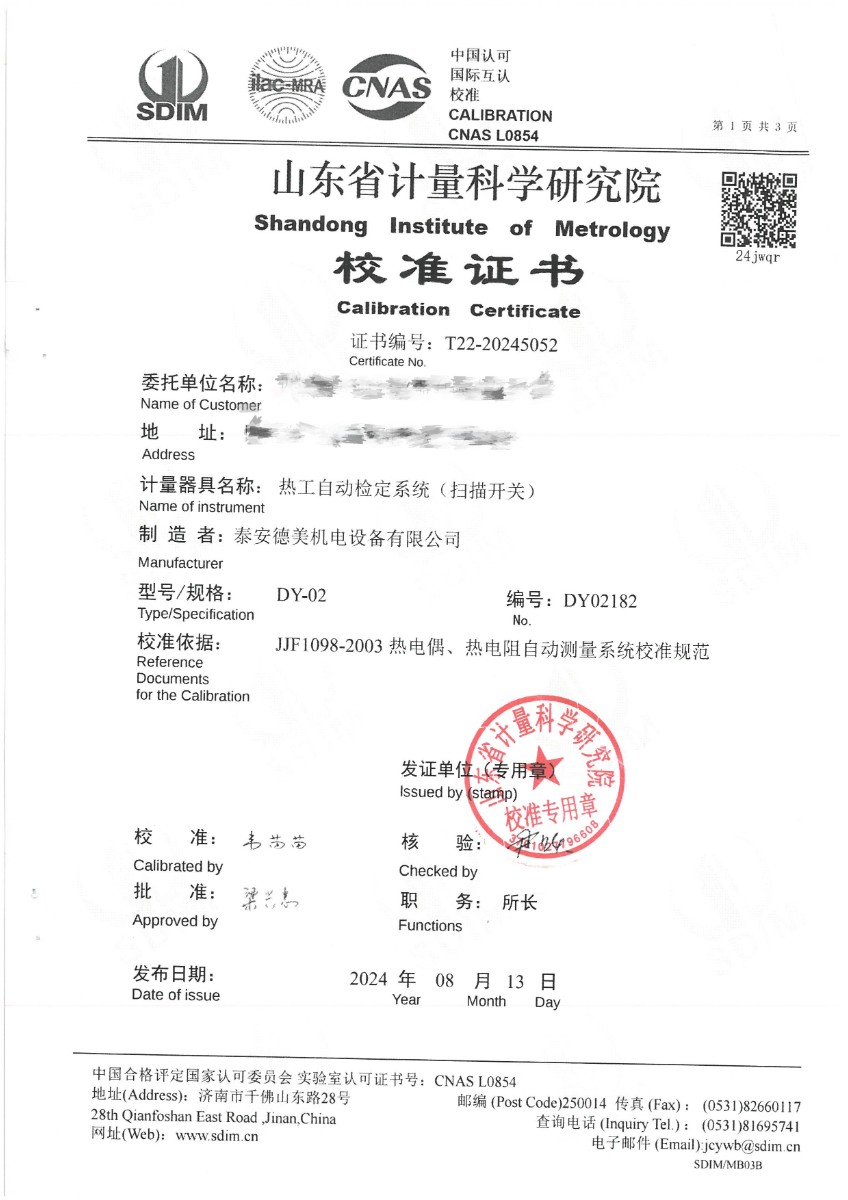 自動檢定系統(tǒng)校準證書 2024-8-22 本文被閱讀 6443 次