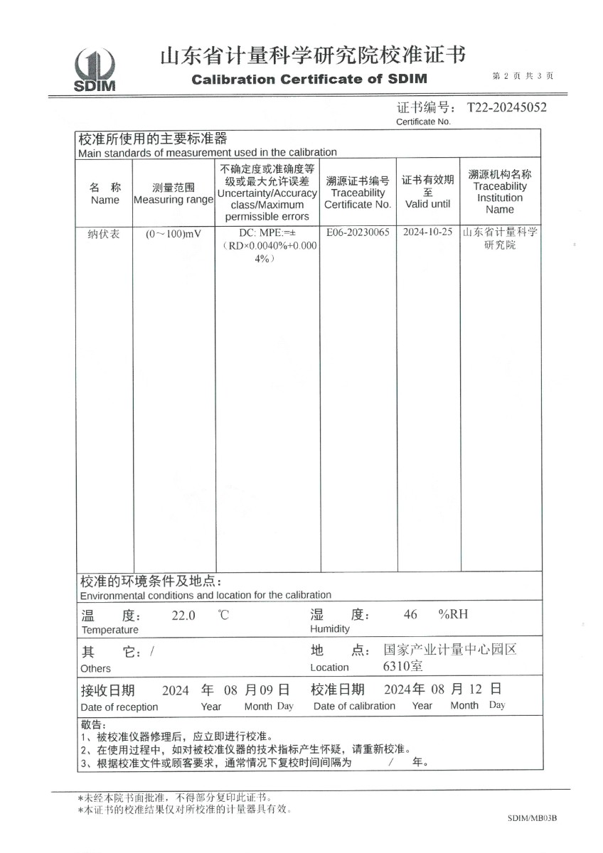 上一條:表面溫度計(室溫+5~400℃)校準證書下一條:超低溫面源黑體爐(-40-80℃)校準證書