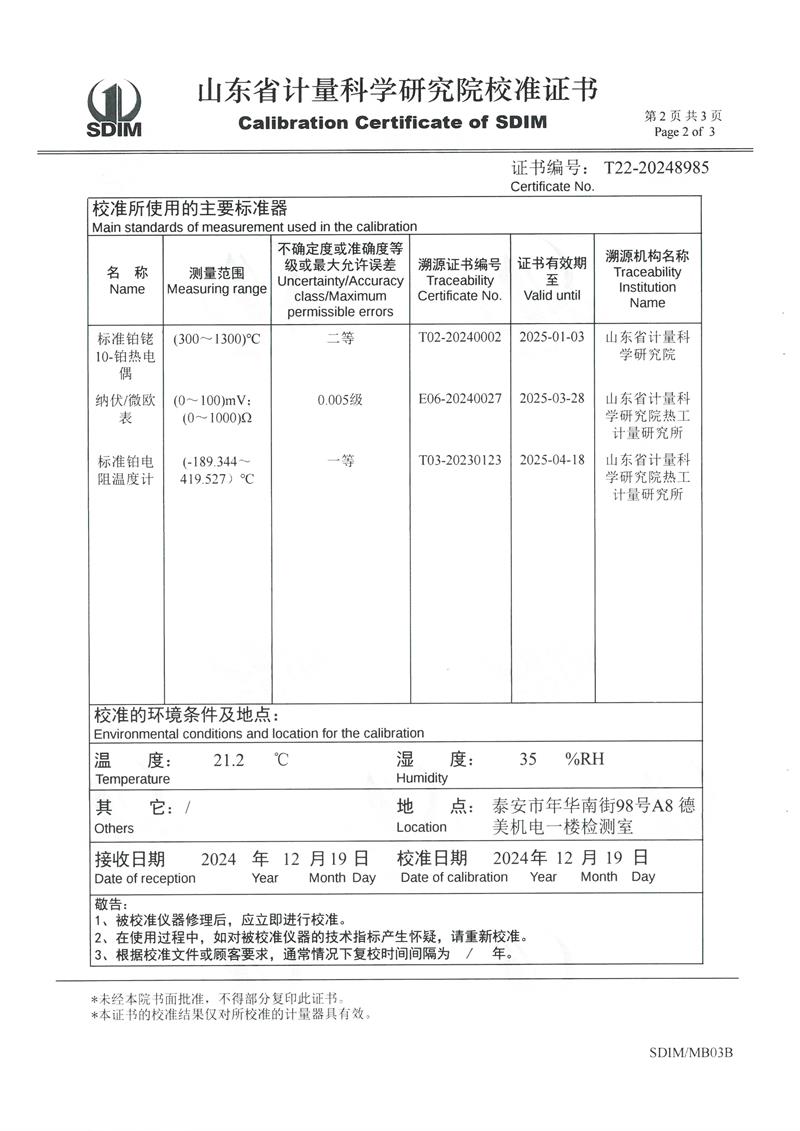 熱電偶、熱電阻自動檢測系統(tǒng)校準證書