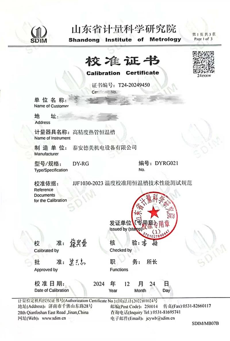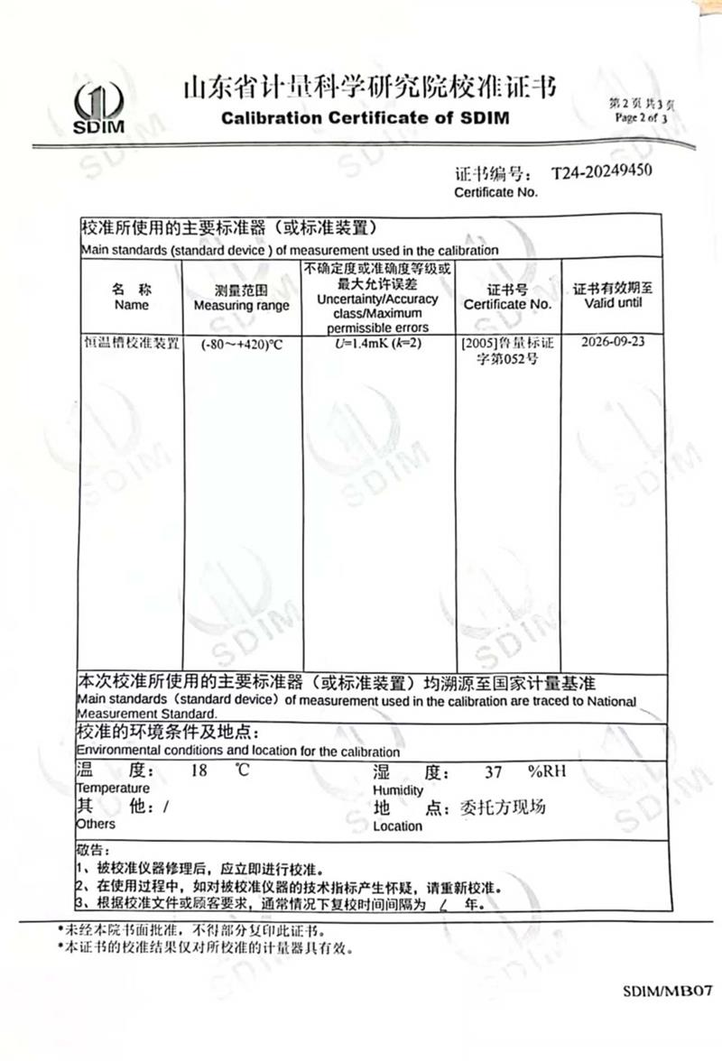 上一條:油槽(70~300℃)校準(zhǔn)證書 | 下一條:超低溫面源黑體爐(-40-80℃)校準(zhǔn)證書 |
