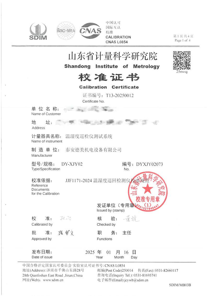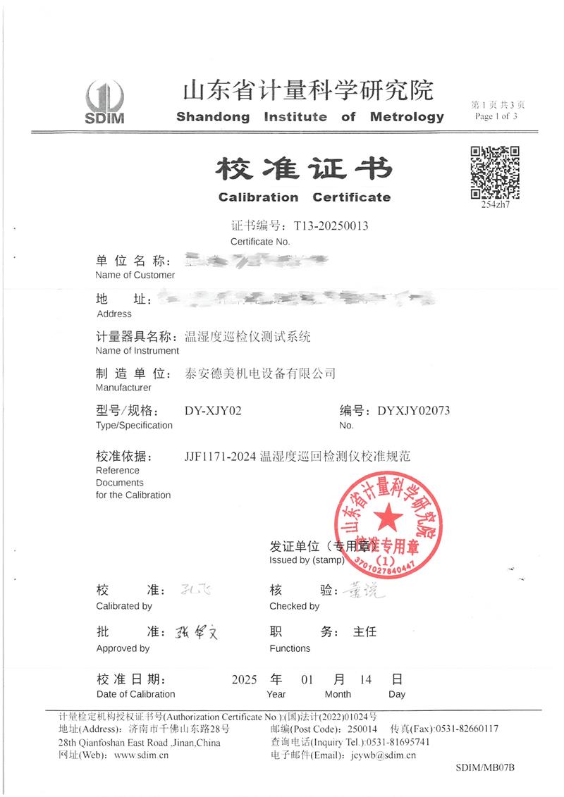 溫濕度巡檢儀測試系統(tǒng)校準證書 2025-1-20 本文被閱讀 5239 次