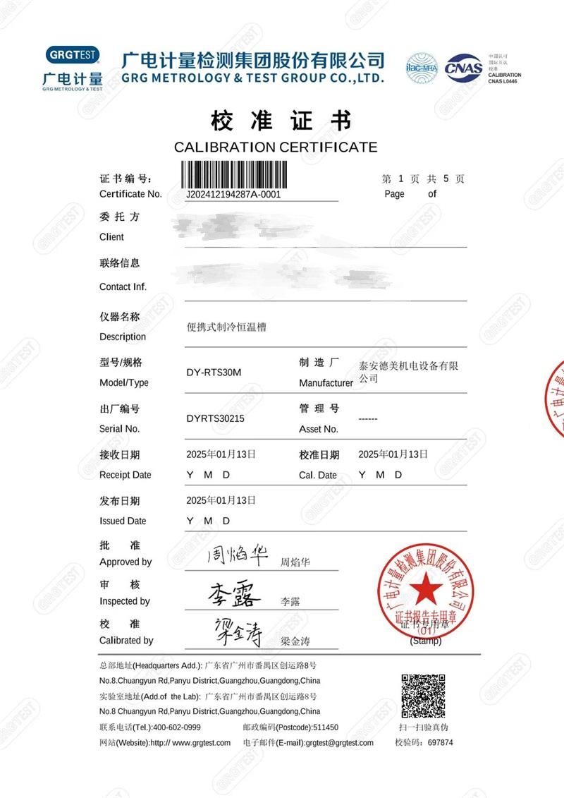 上一條:便攜式制冷恒溫槽(-30-105℃)校準(zhǔn)證書下一條:超低溫面源黑體爐(-40-80℃)校準(zhǔn)證書