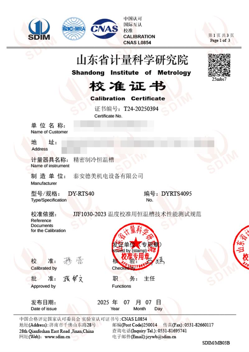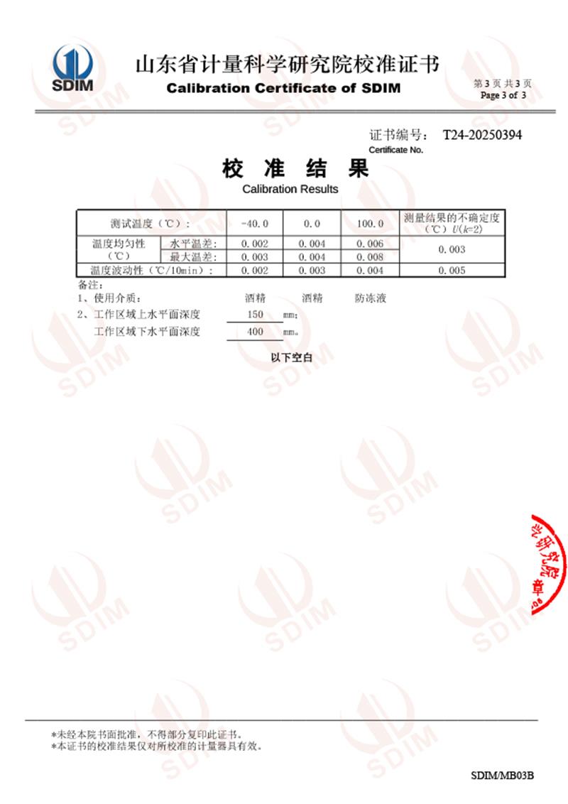 制冷恒溫槽(-40-100℃)校準證書 2025-7-10 本文被閱讀 2266 次