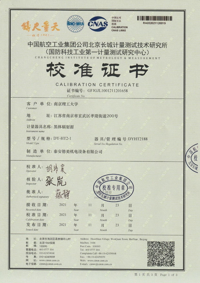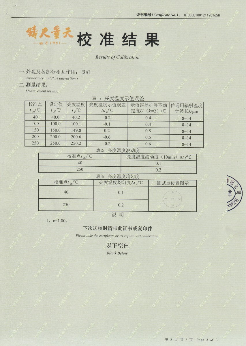 南京理工大學-黑體輻射源校準證書40-250℃ 2021-12-4 本文被閱讀 13386 次