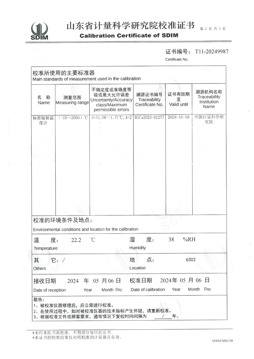 面源黑體爐校準證書 2024-5-21 本文被閱讀 5981 次