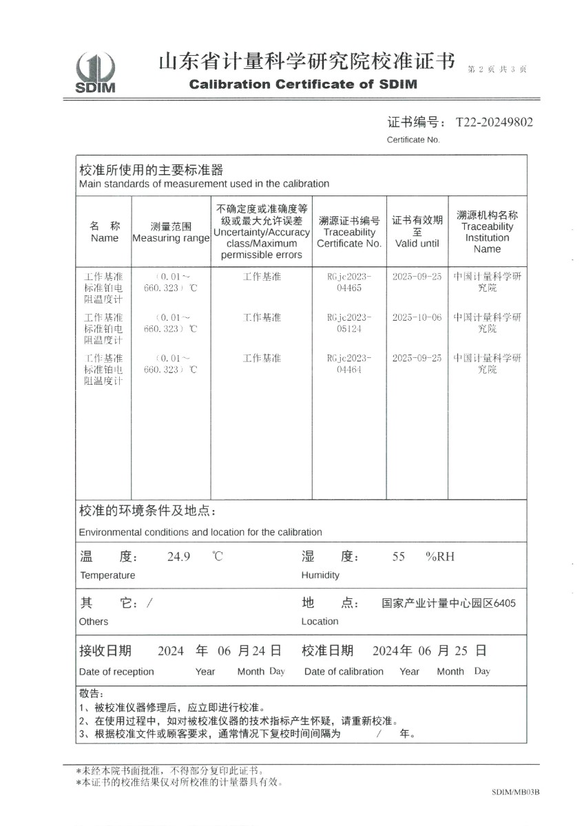 上一條:高精度數(shù)字溫度計(30~150℃)校準證書下一條:超低溫面源黑體爐(-40-80℃)校準證書