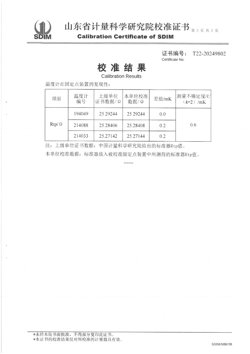 水三相點瓶校準證書 2024-7-5 本文被閱讀 6018 次
