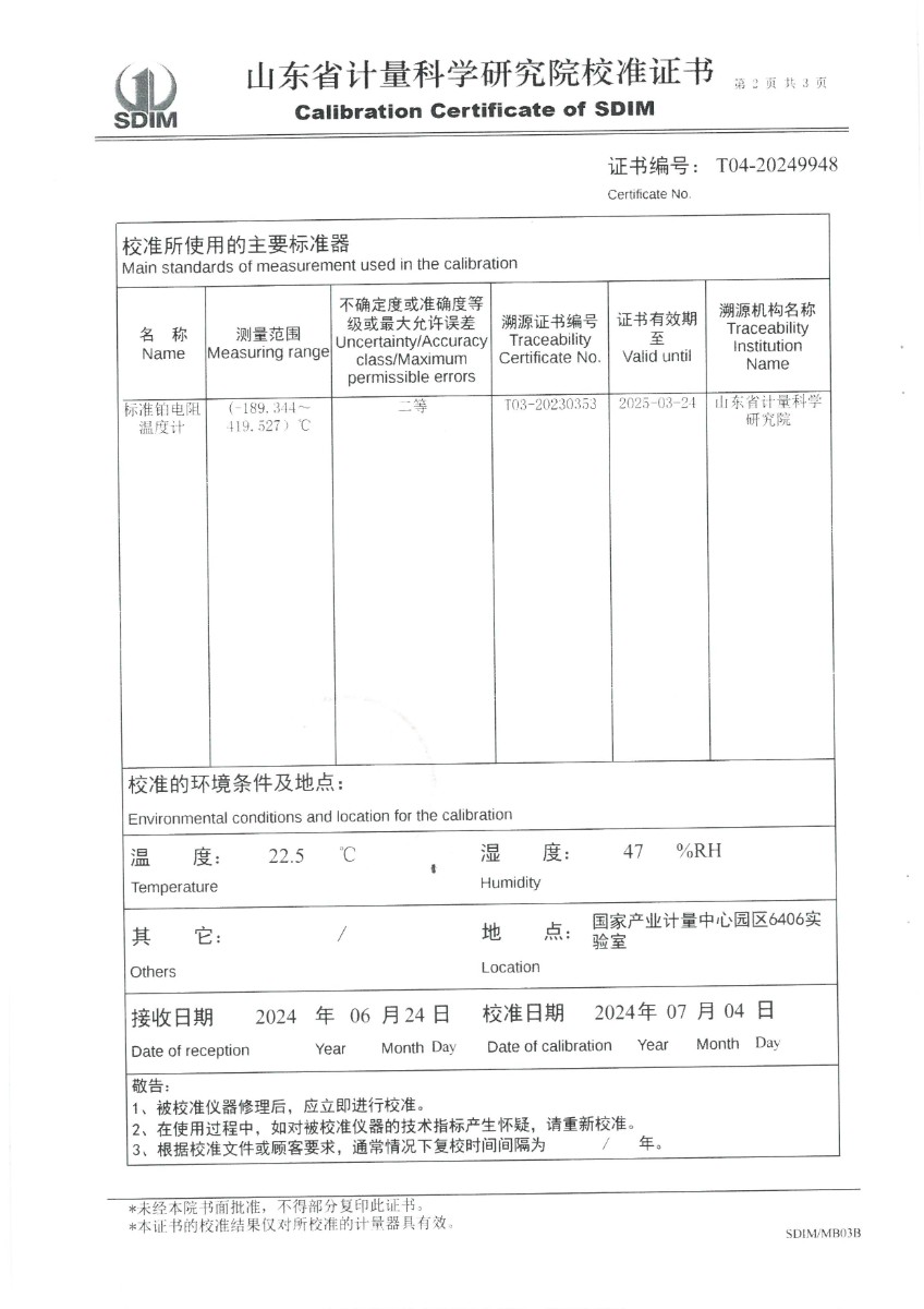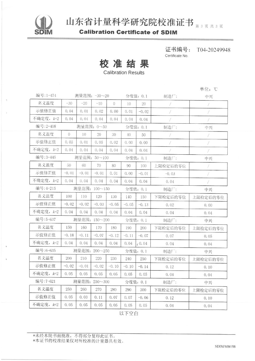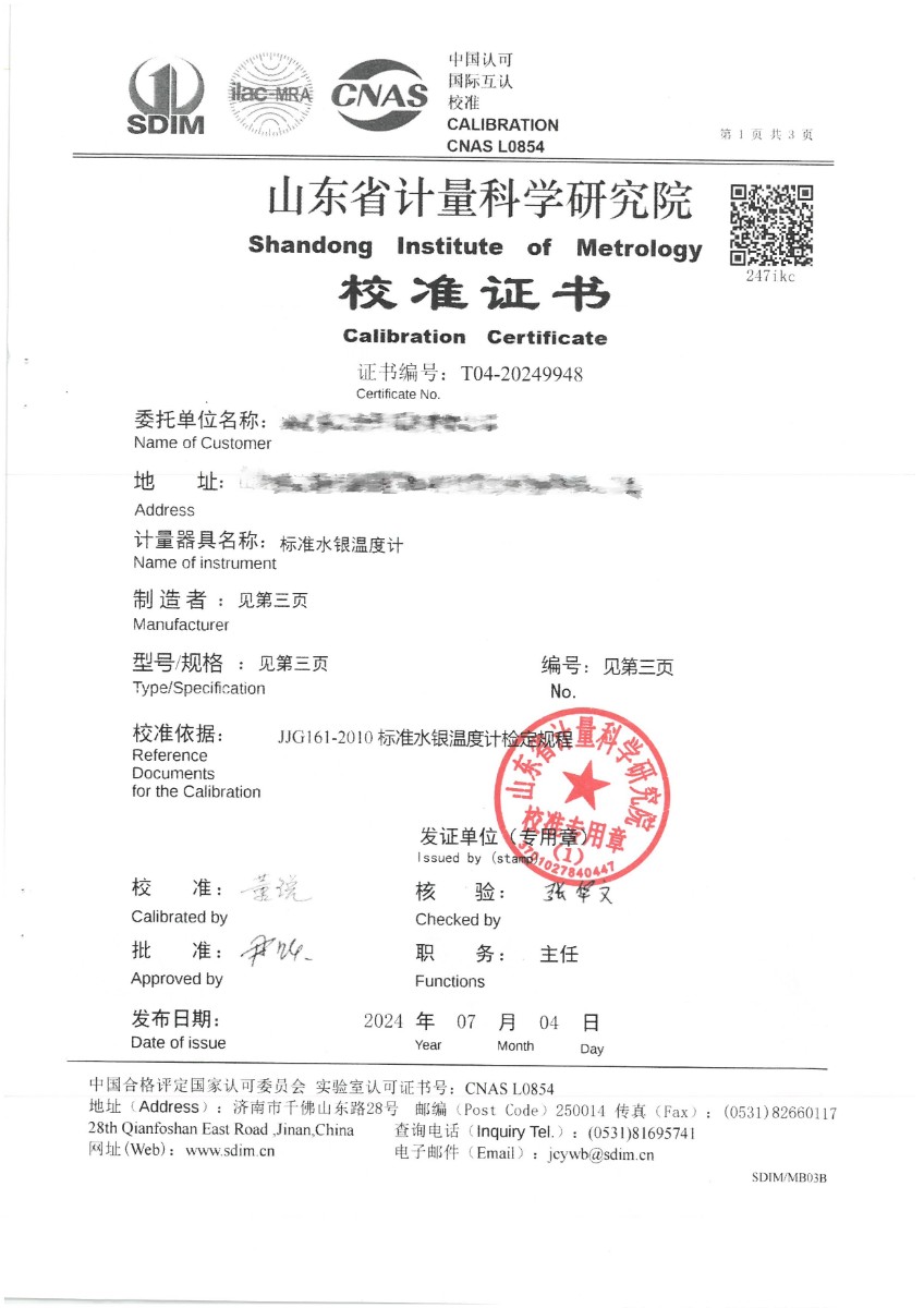 標(biāo)準水銀溫度計校準證書 2024-7-29 本文被閱讀 6443 次