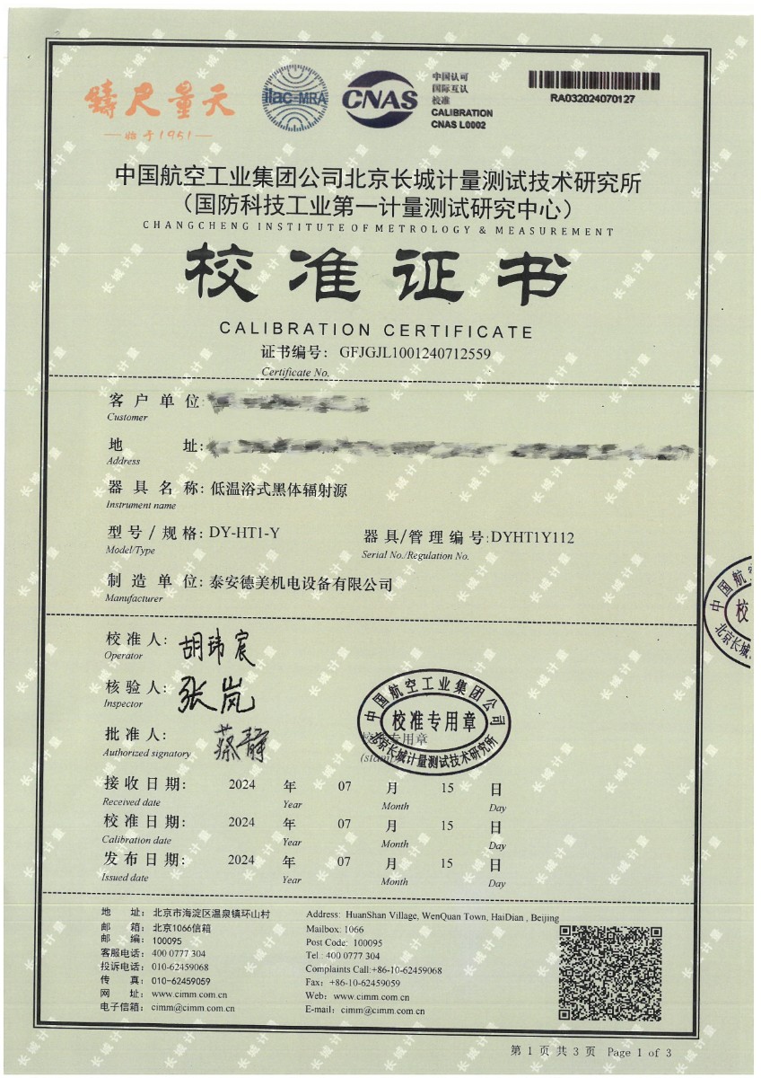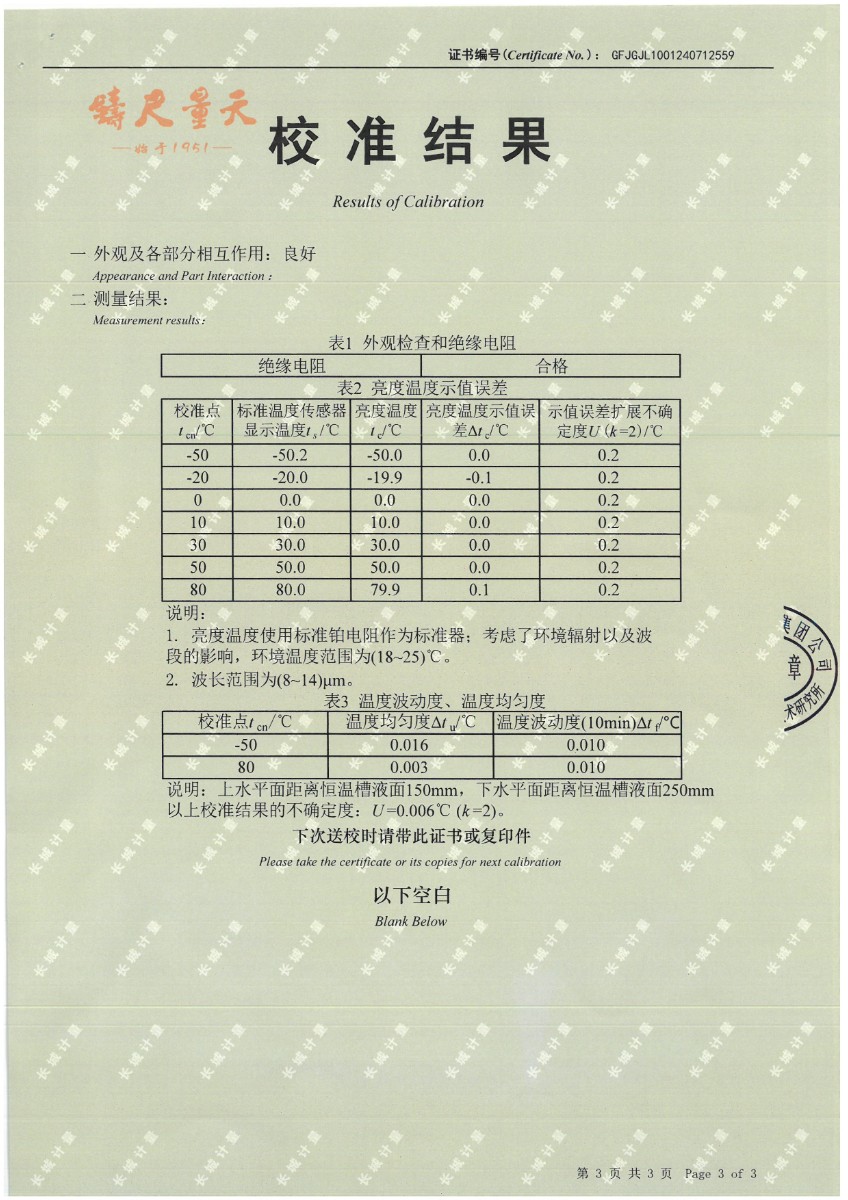 低溫浴式(-50~80℃)校準(zhǔn)證書(shū) 2024-7-29 本文被閱讀 6759 次