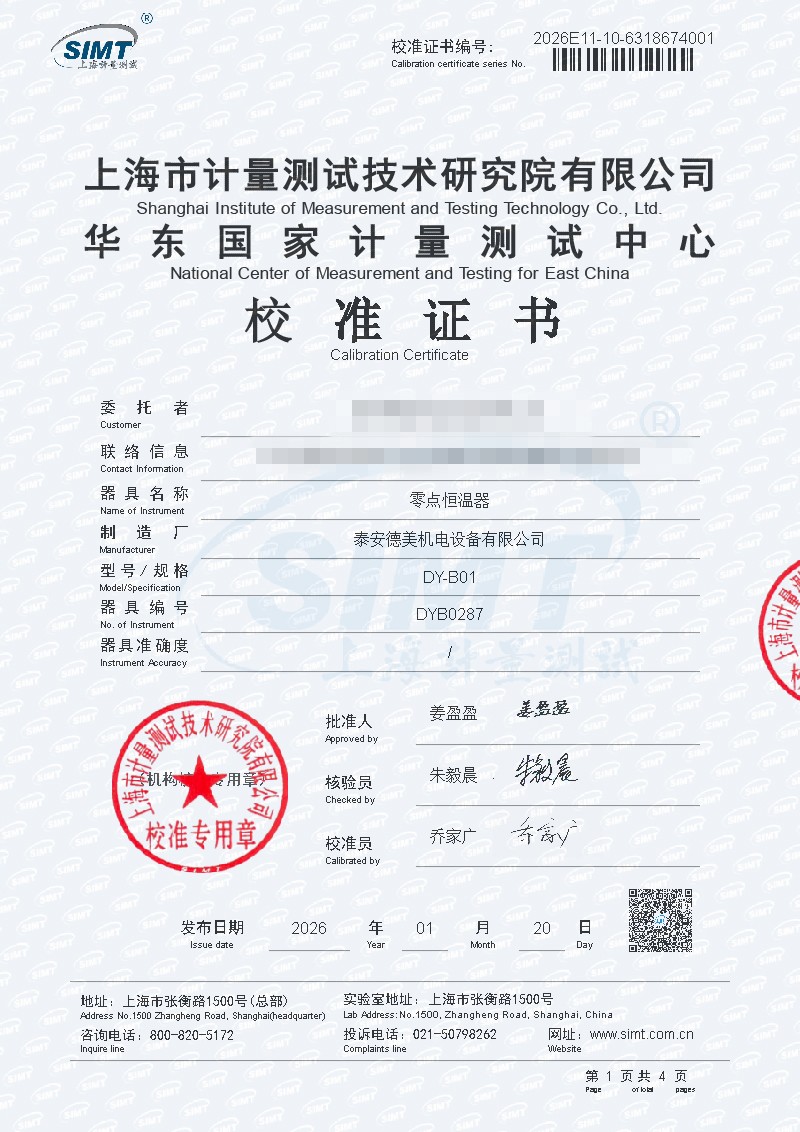 | 上一條:高精度數(shù)字溫度計(jì)-校準(zhǔn)證書 | 下一條:水三相點(diǎn)瓶凍制保存裝置-校準(zhǔn)證書 |