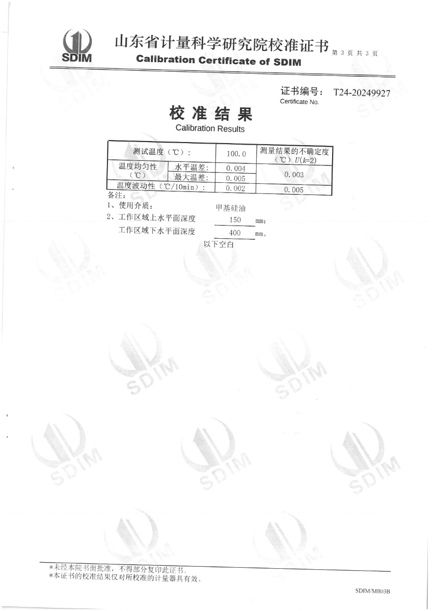 高精度恒溫油槽(90~300℃)校準(zhǔn)證書