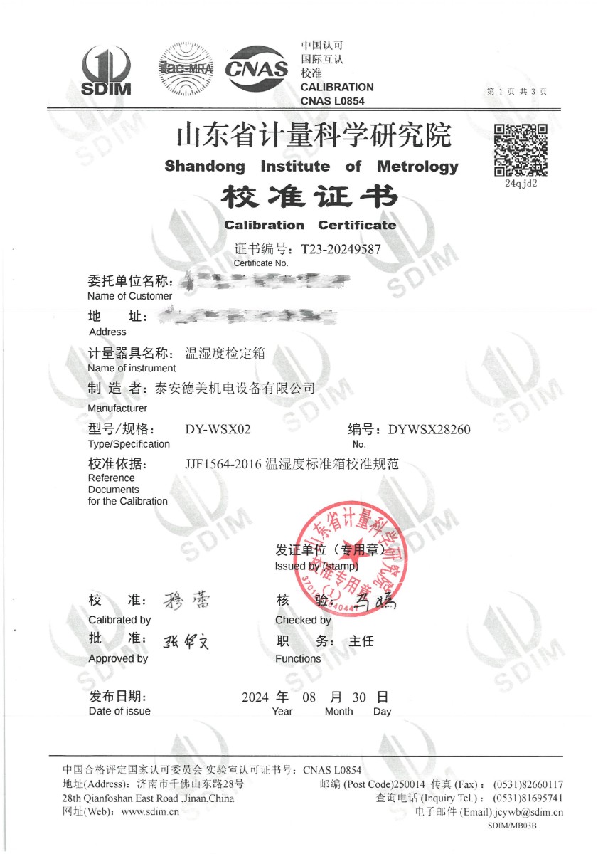 上一條:高精度恒溫槽(-80~100℃)校準(zhǔn)證書(shū)下一條:便攜式干體爐(-30-150℃)校準(zhǔn)證書(shū)