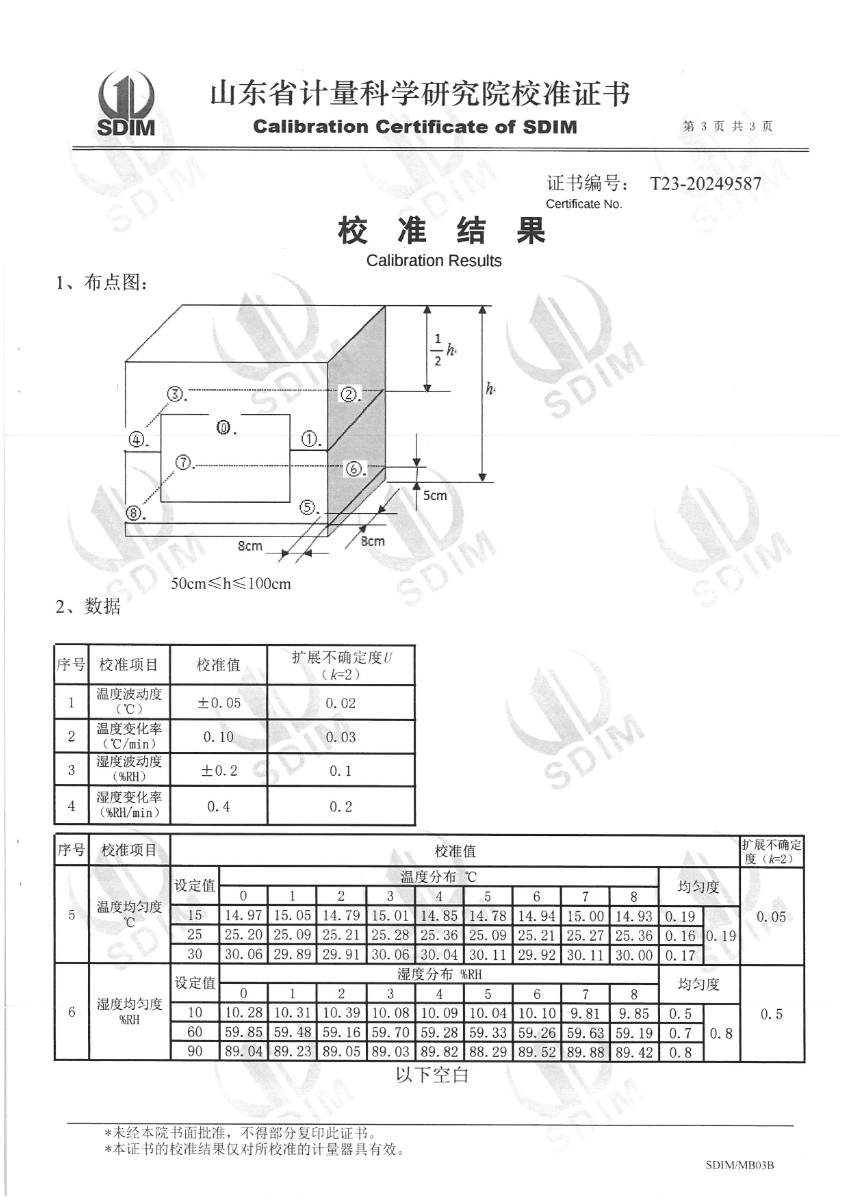 溫濕度檢定箱(-20~80℃)校準(zhǔn)證書(shū) 2024-9-3 本文被閱讀 5579 次