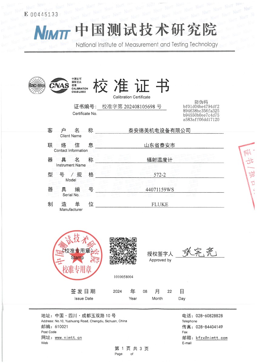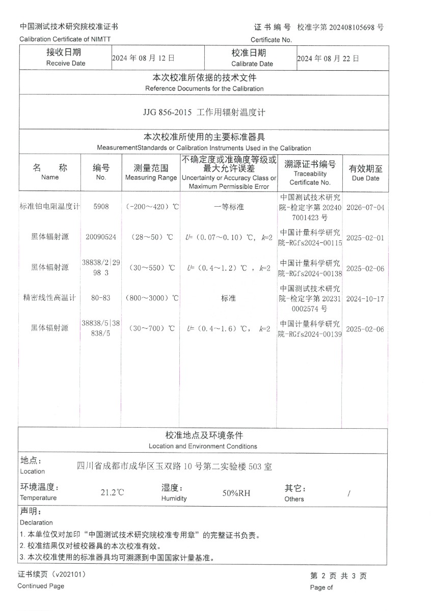 上一條:高精度數(shù)字溫度計(-80~300℃)校準(zhǔn)證書 | 下一條:超低溫面源黑體爐(-40-80℃)校準(zhǔn)證書 |