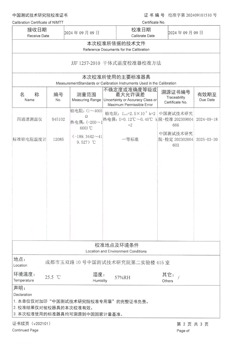 上一條:高溫干體爐(300~1200℃)校準證書下一條:超低溫面源黑體爐(-40-80℃)校準證書