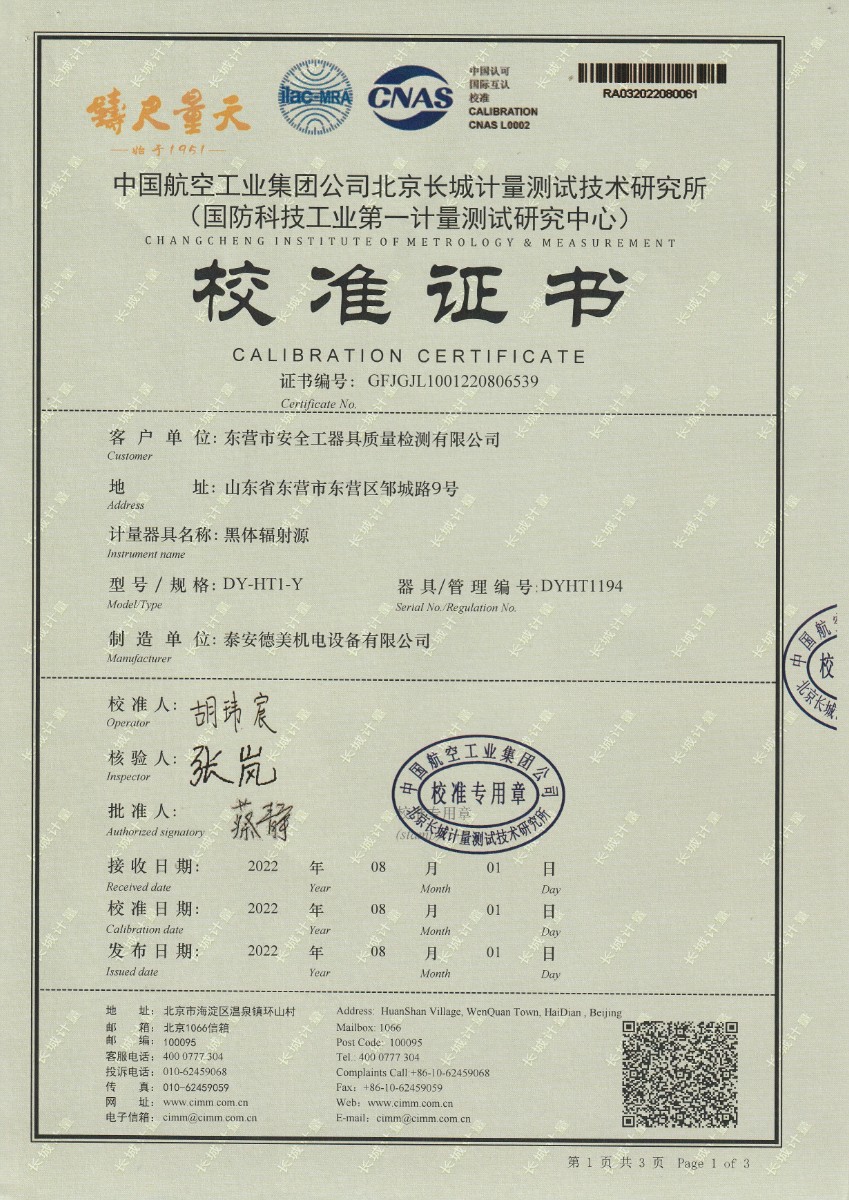 上一條:東營(yíng)市安全工器具質(zhì)量檢測(cè)有限公司-黑體輻射源DY-HT2 | 下一條:便攜式干體爐(-30-150℃)校準(zhǔn)證書(shū) |