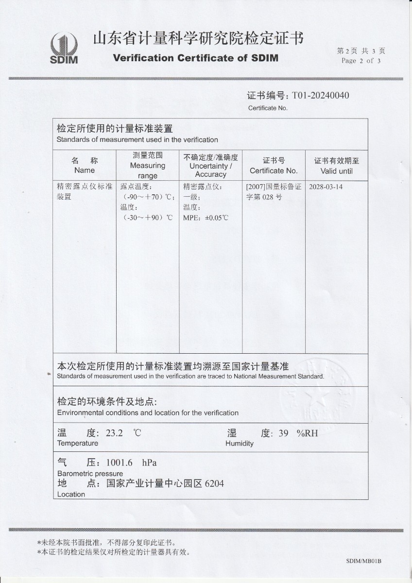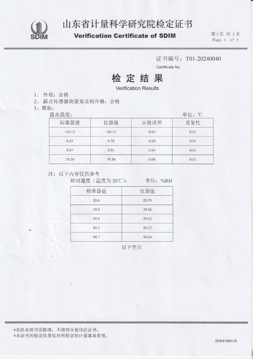 冷鏡式露點儀檢定證書 2024-3-22 本文被閱讀 5490 次