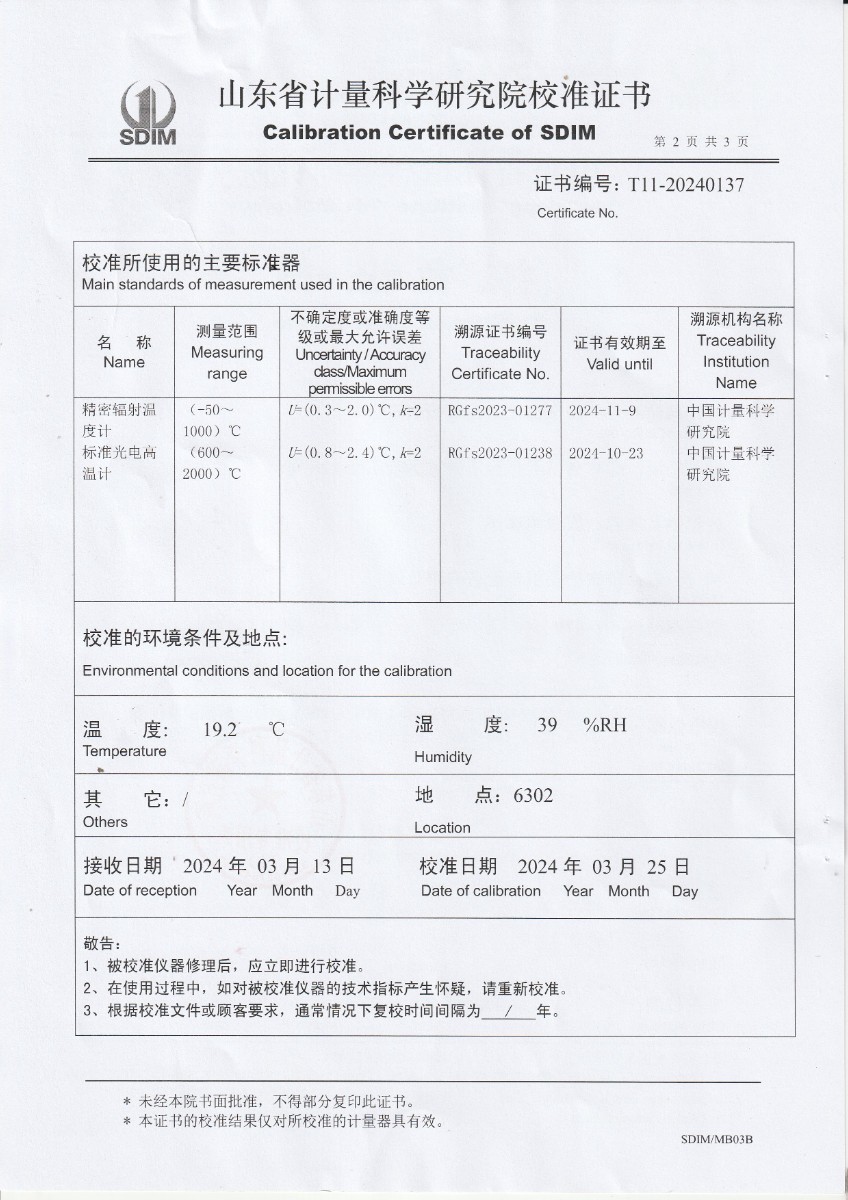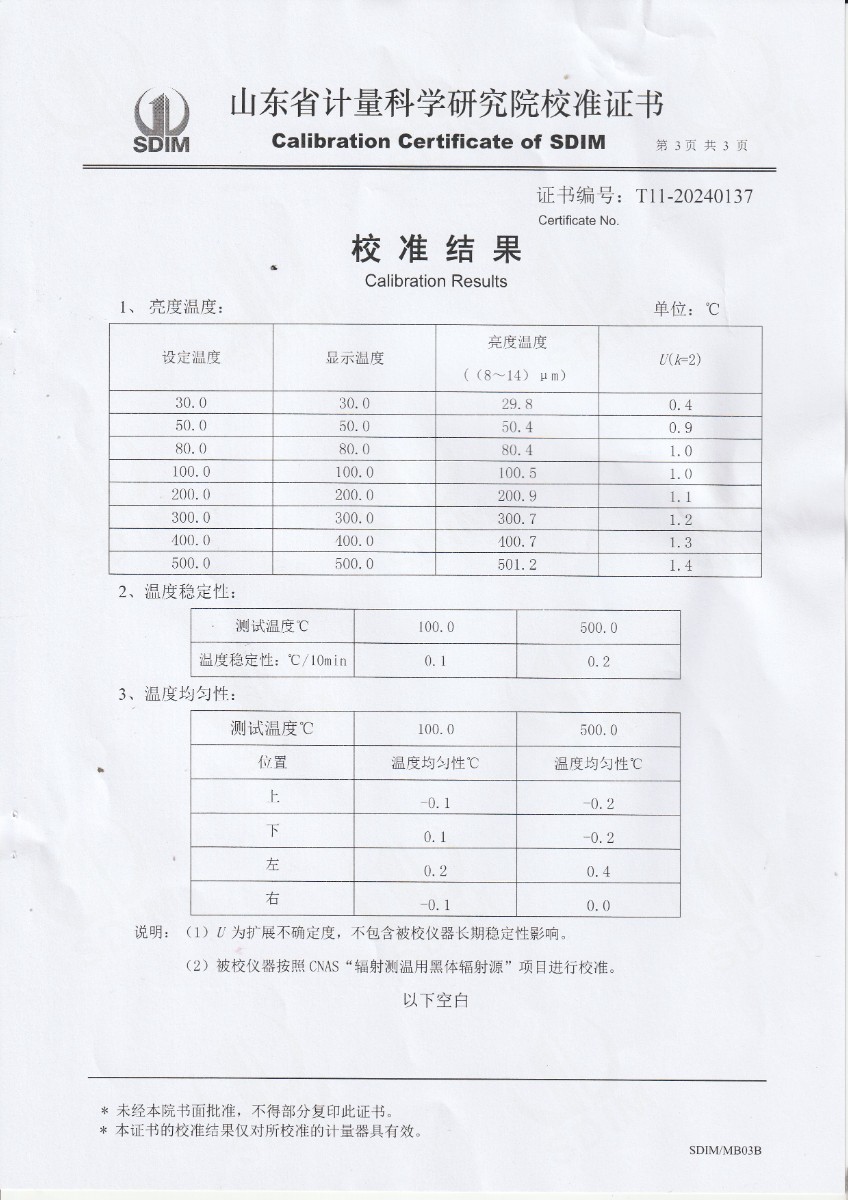 面源黑體爐校準證書 2024-3-27 本文被閱讀 6098 次