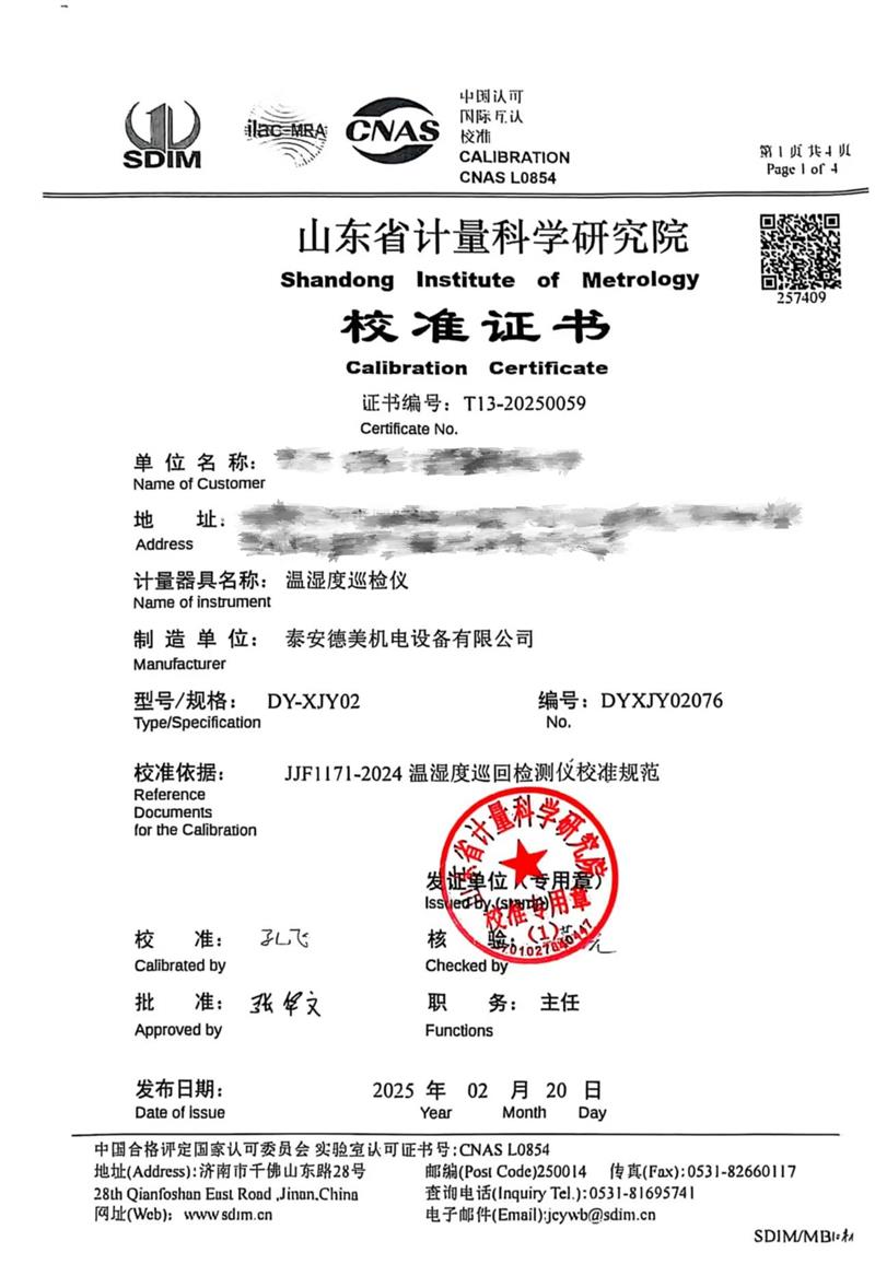 溫濕度巡檢儀校準證書 2025-2-22 本文被閱讀 4356 次