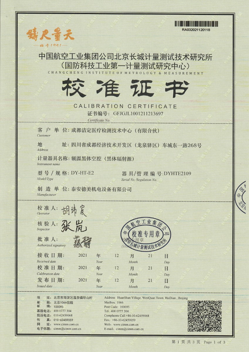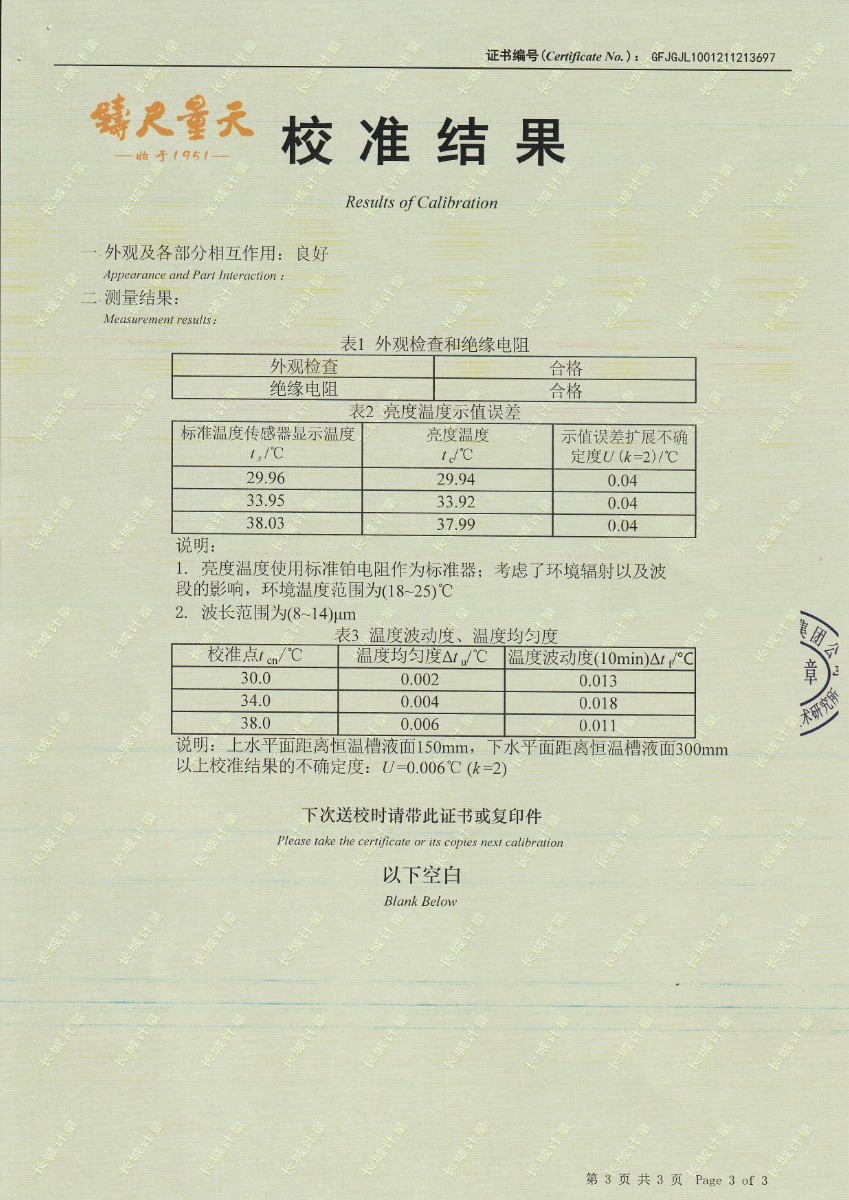 上一條:安徽晶科能源有限公司-黑體輻射源 | 下一條:超低溫面源黑體爐(-40-80℃)校準(zhǔn)證書 |