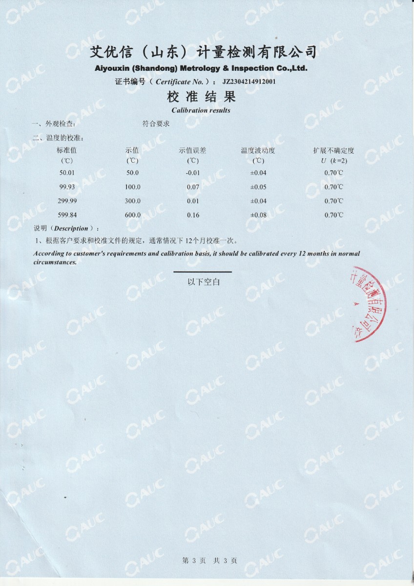 上一條:廣東省順邦計(jì)量檢測(cè)科技有限公司 冷鏡式露點(diǎn)儀(溫度) 校準(zhǔn)證書(shū) | 下一條:超低溫面源黑體爐(-40-80℃)校準(zhǔn)證書(shū) |
