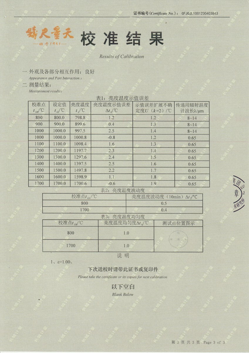 上一條:無錫英菲感知技術(shù)有限公司 高溫黑體 校準(zhǔn)證書 (2) | 下一條:超低溫面源黑體爐(-40-80℃)校準(zhǔn)證書 |