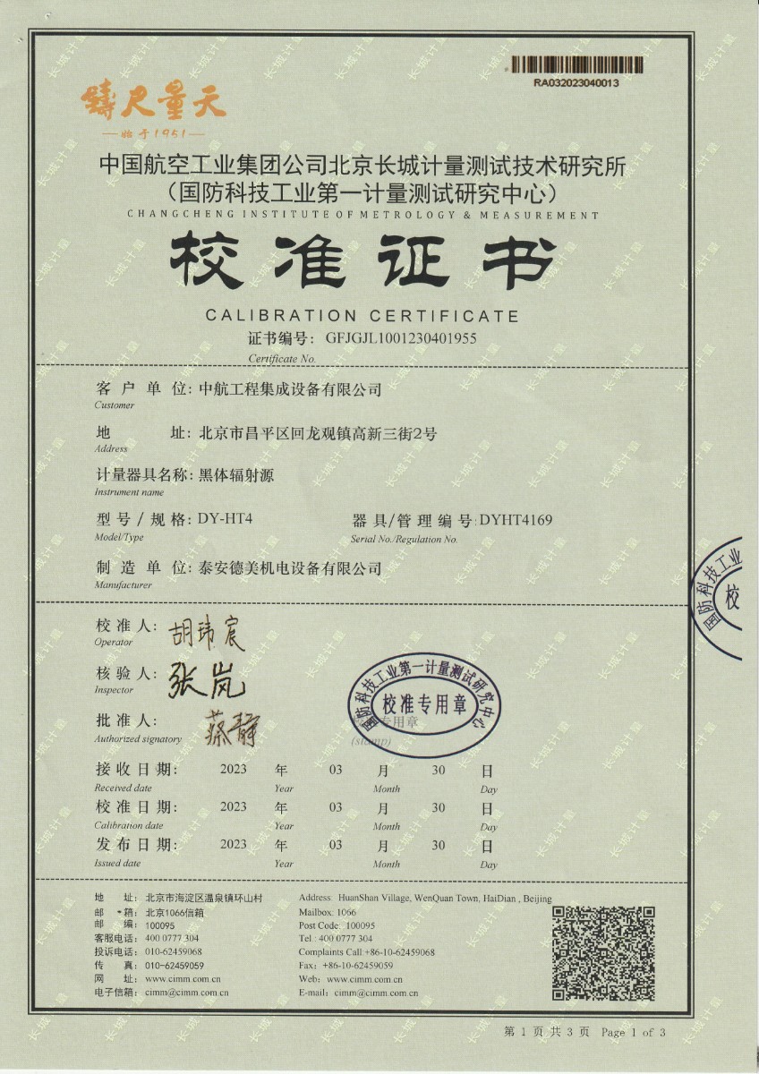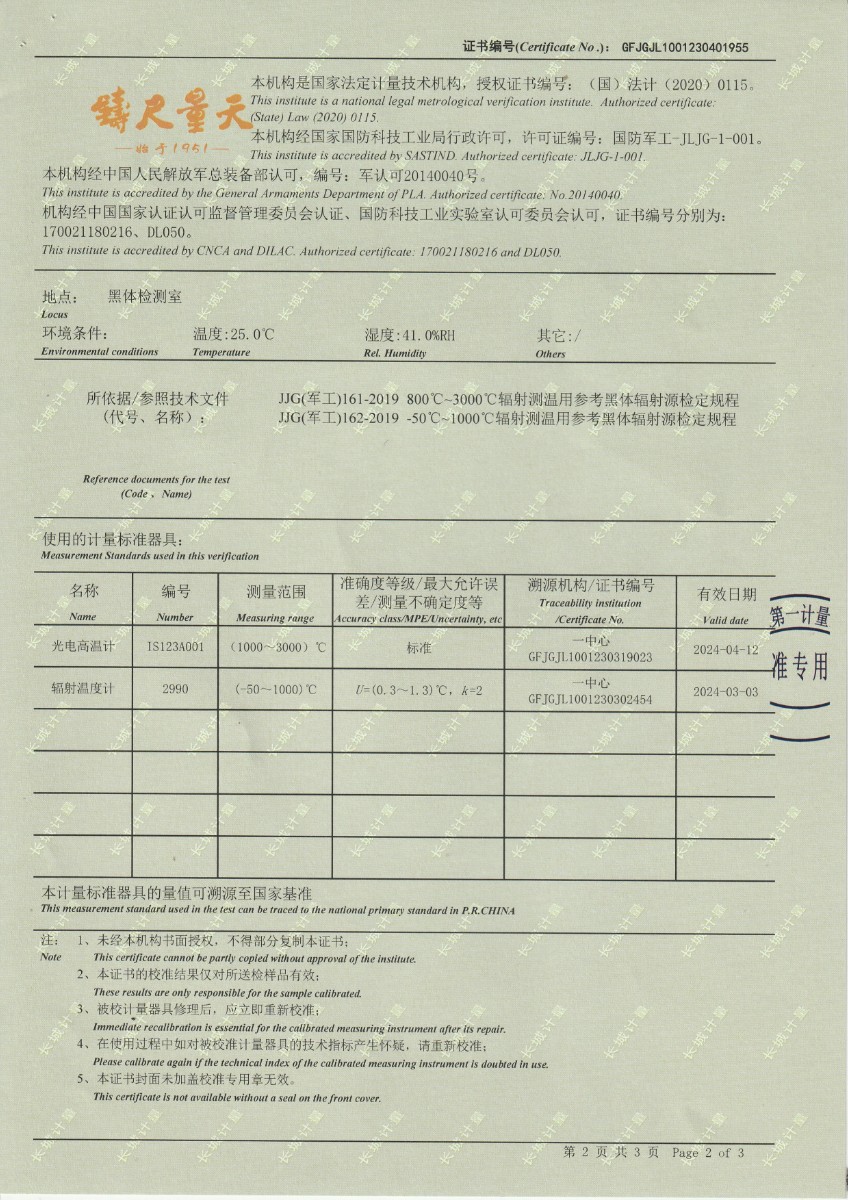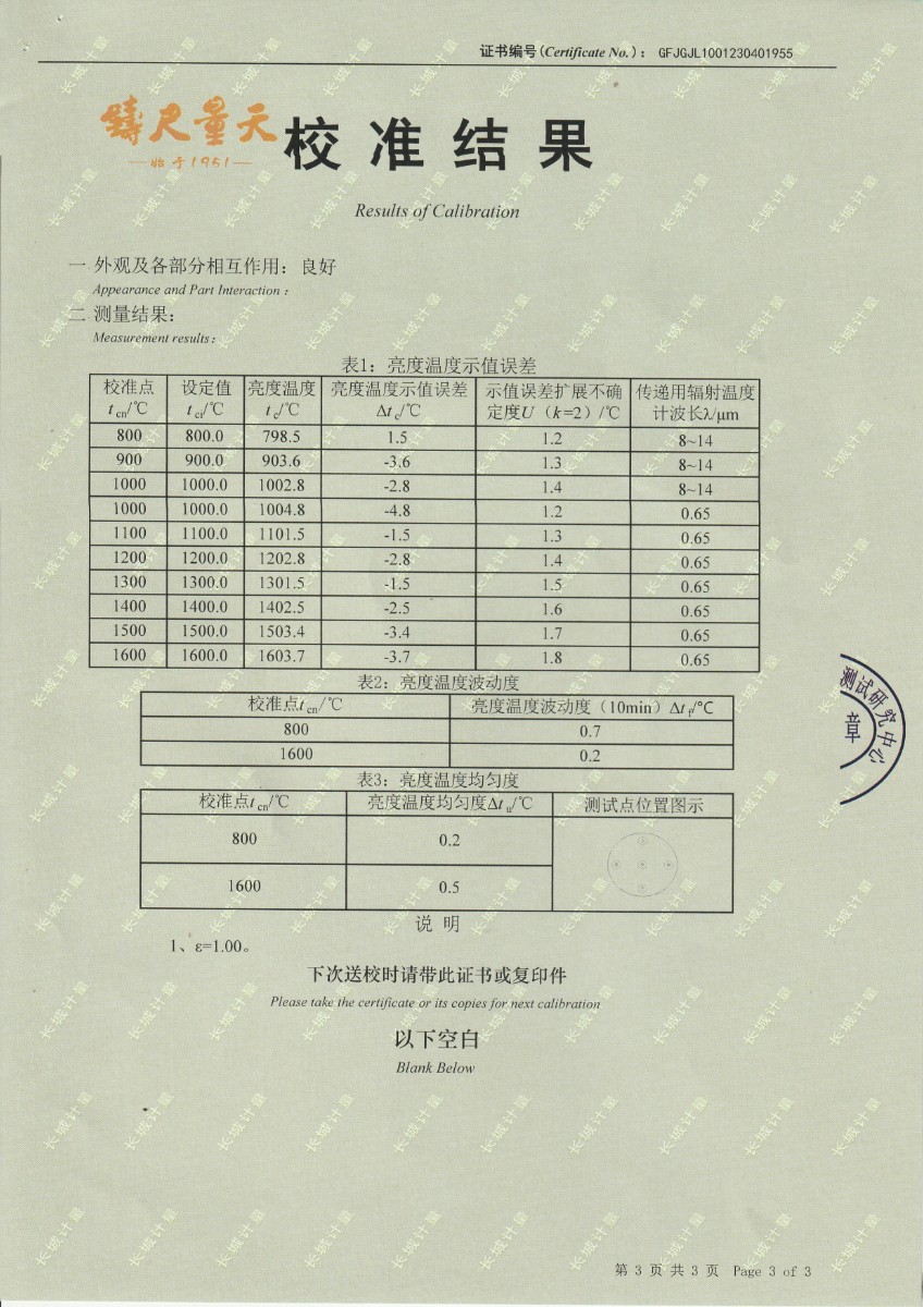 上一條:浙江弘志計量測試有限公司 黑體輻射源 校準證書 | 下一條:超低溫面源黑體爐(-40-80℃)校準證書 |