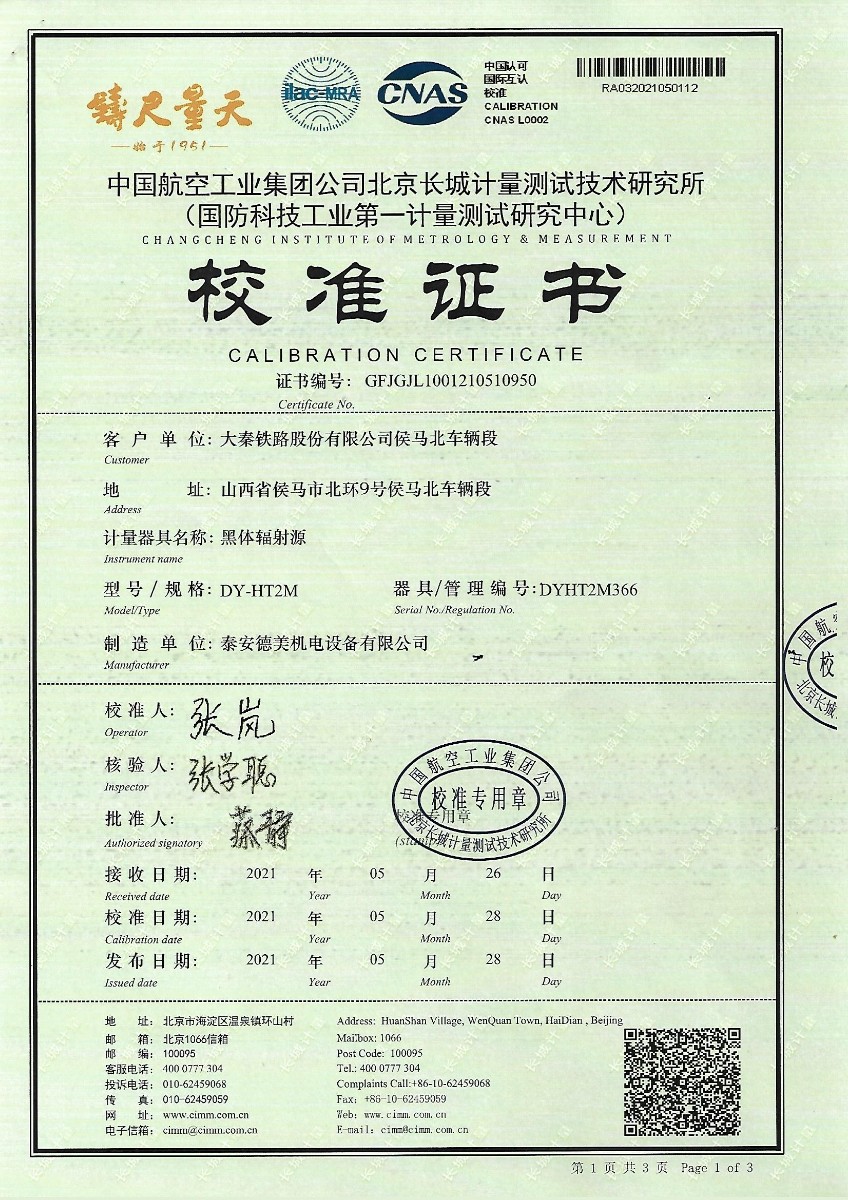 上一條:哈爾濱三聯(lián)藥業(yè)股份有限公司-標準通風干濕表 | 下一條:便攜式干體爐(-30-150℃)校準證書 |