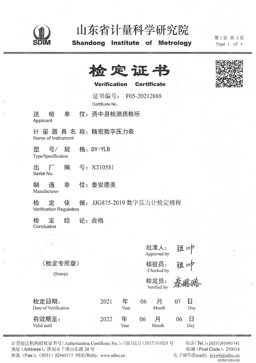 上一條:南昌計量檢定站-數(shù)字壓力校驗儀 | 下一條:便攜式干體爐(-30-150℃)校準(zhǔn)證書 |
