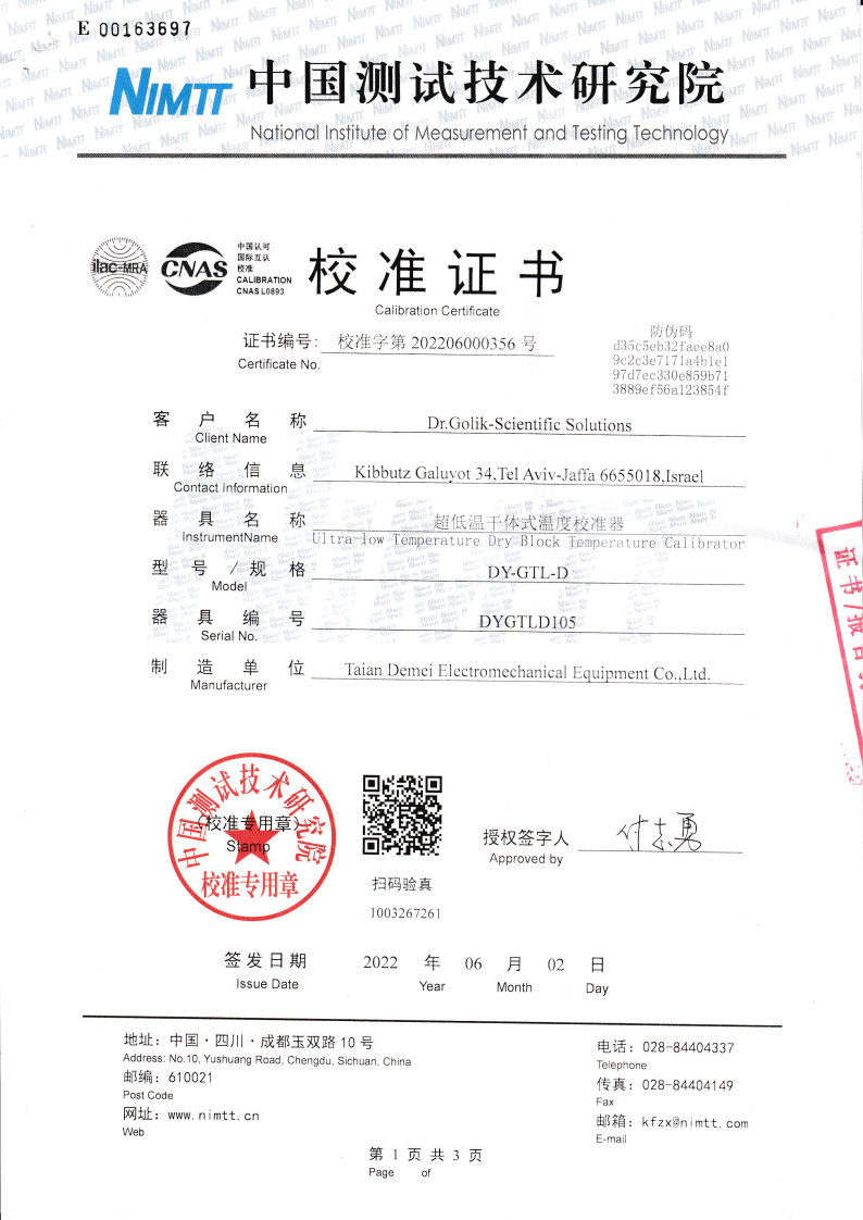 以色列-超低溫干體爐 2022-6-7 本文被閱讀 13853 次
