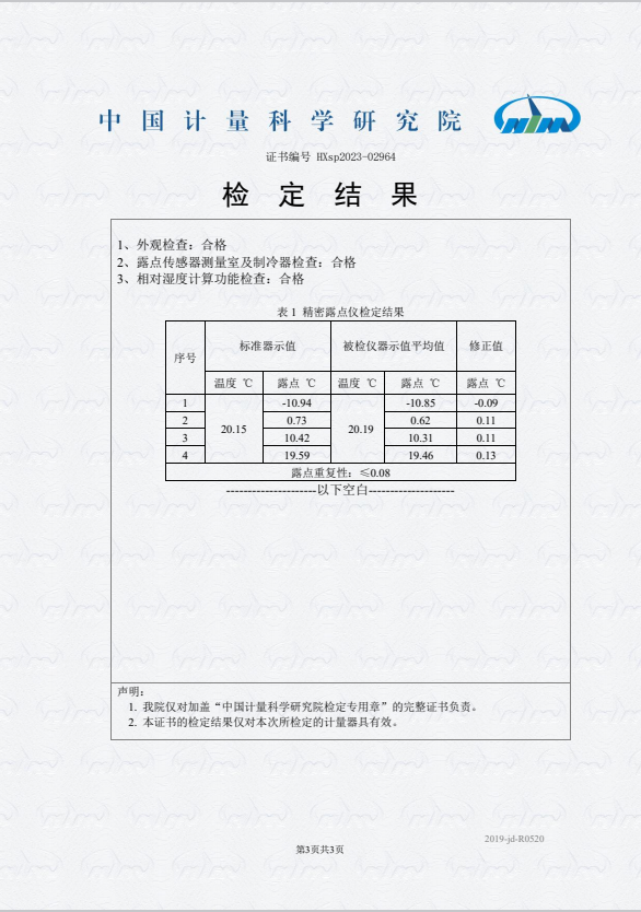 露點(diǎn)儀檢定證書 2023-11-9 本文被閱讀 8433 次