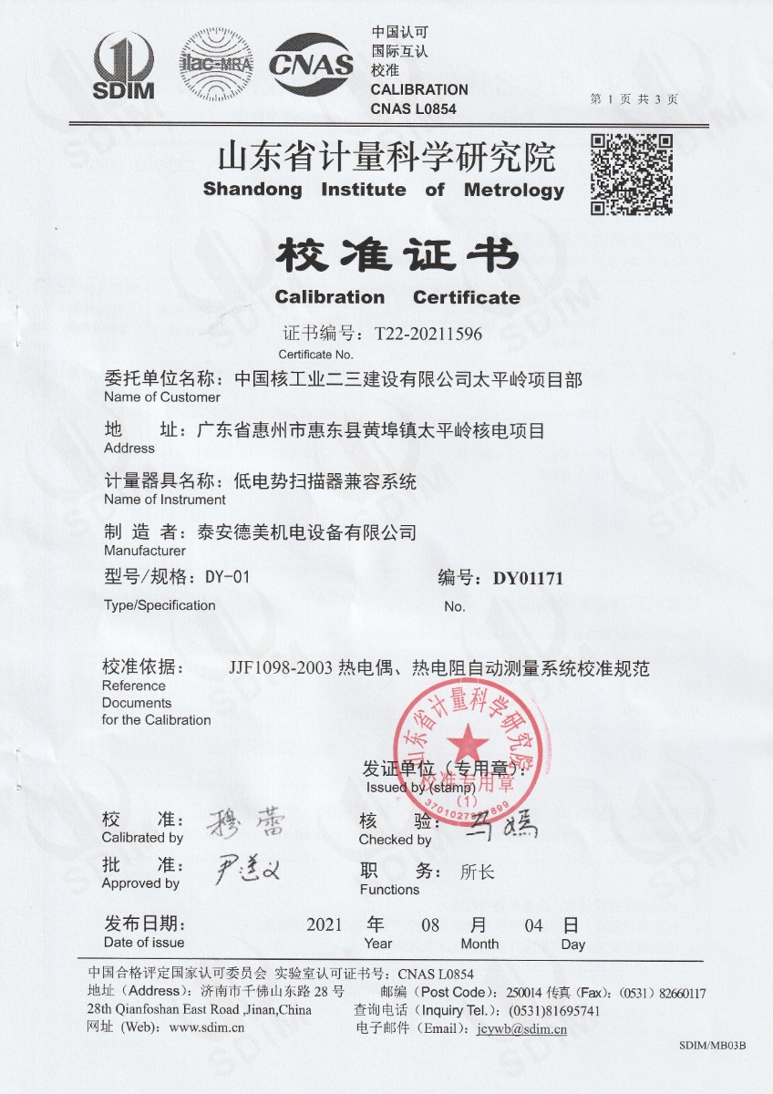 上一條:DY-HTM面源黑體爐,輻射面100mm(-20℃~600℃) | 下一條:超低溫面源黑體爐(-40-80℃)校準證書 |