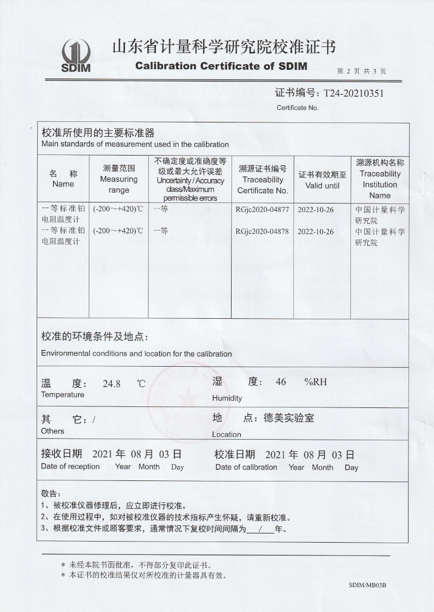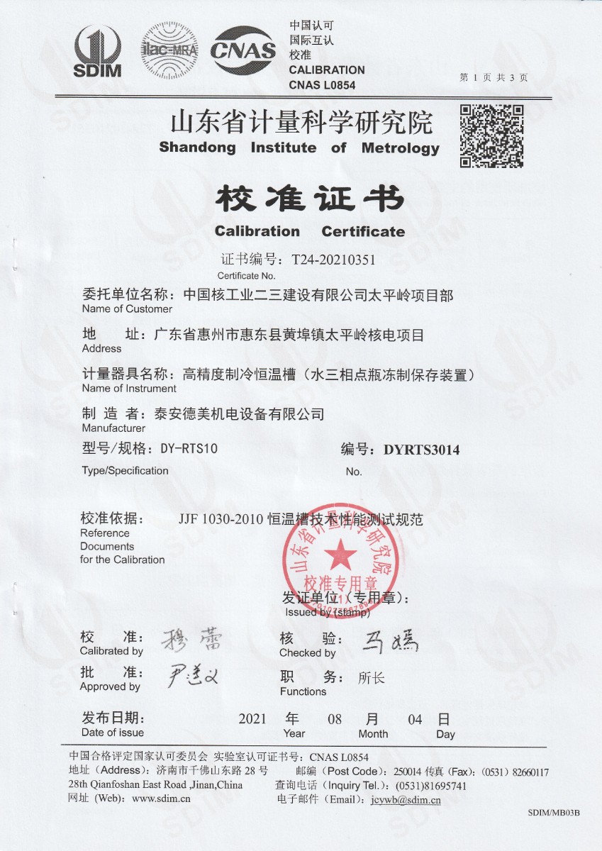 上一條:中國核工業(yè)二三建設(shè)有限公司太平嶺項(xiàng)目部-熱電偶檢定爐 | 下一條:超低溫面源黑體爐(-40-80℃)校準(zhǔn)證書 |