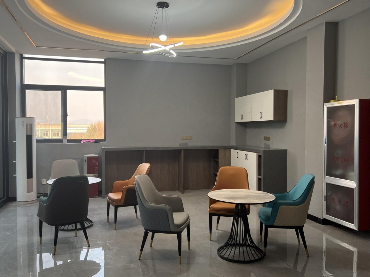 展望辦公現(xiàn)場,寬敞明亮的辦公空間,置換一新的辦公家具,不但配套齊全,而且功能齊備,設(shè)有會議室、茶水間等部門及功能區(qū),處處體現(xiàn)出德美集團(tuán)欣欣向榮與勃勃生機(jī)。