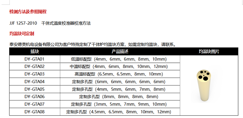 通過干體爐可以方便地校準(zhǔn)溫度傳感器、水銀溫度計、膨脹式溫度計、熱電偶、熱電阻、等溫度傳感器。