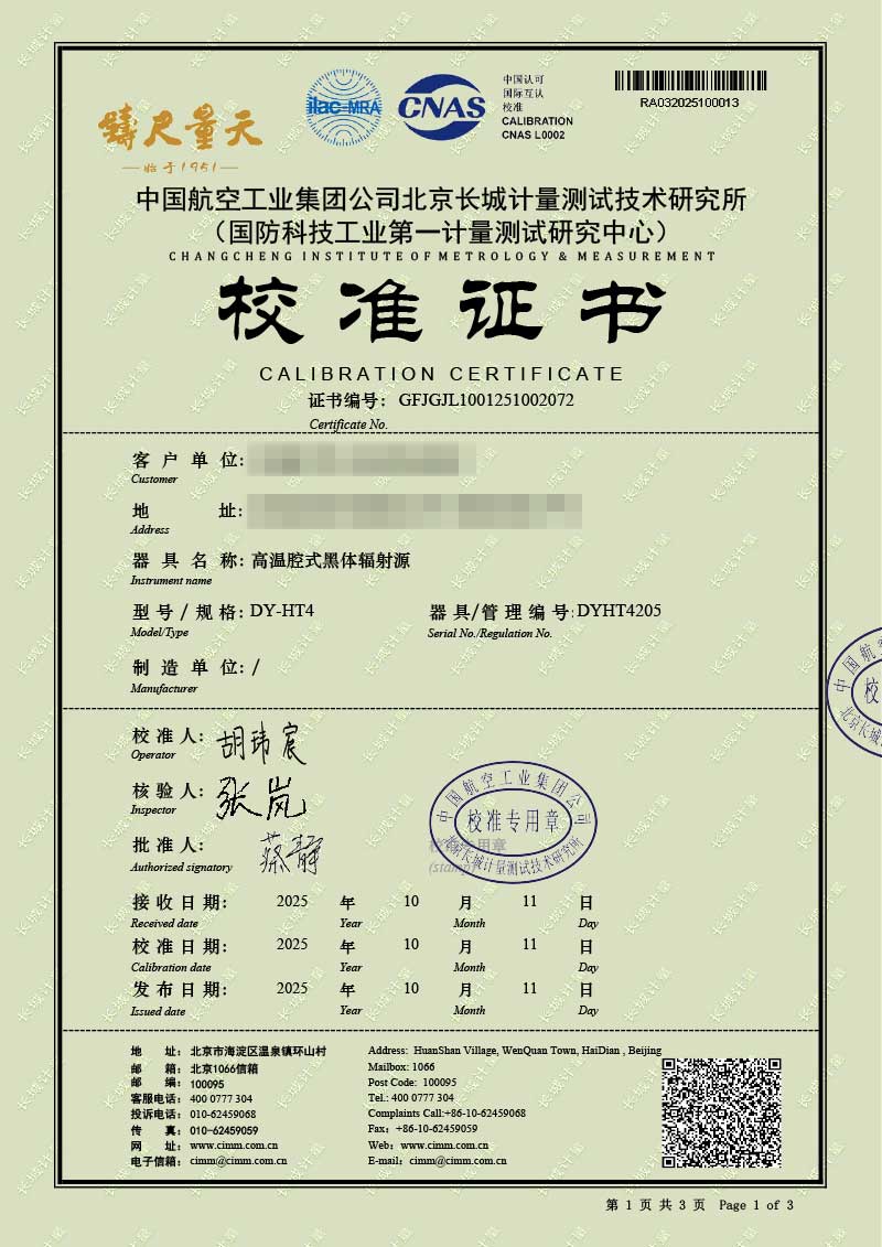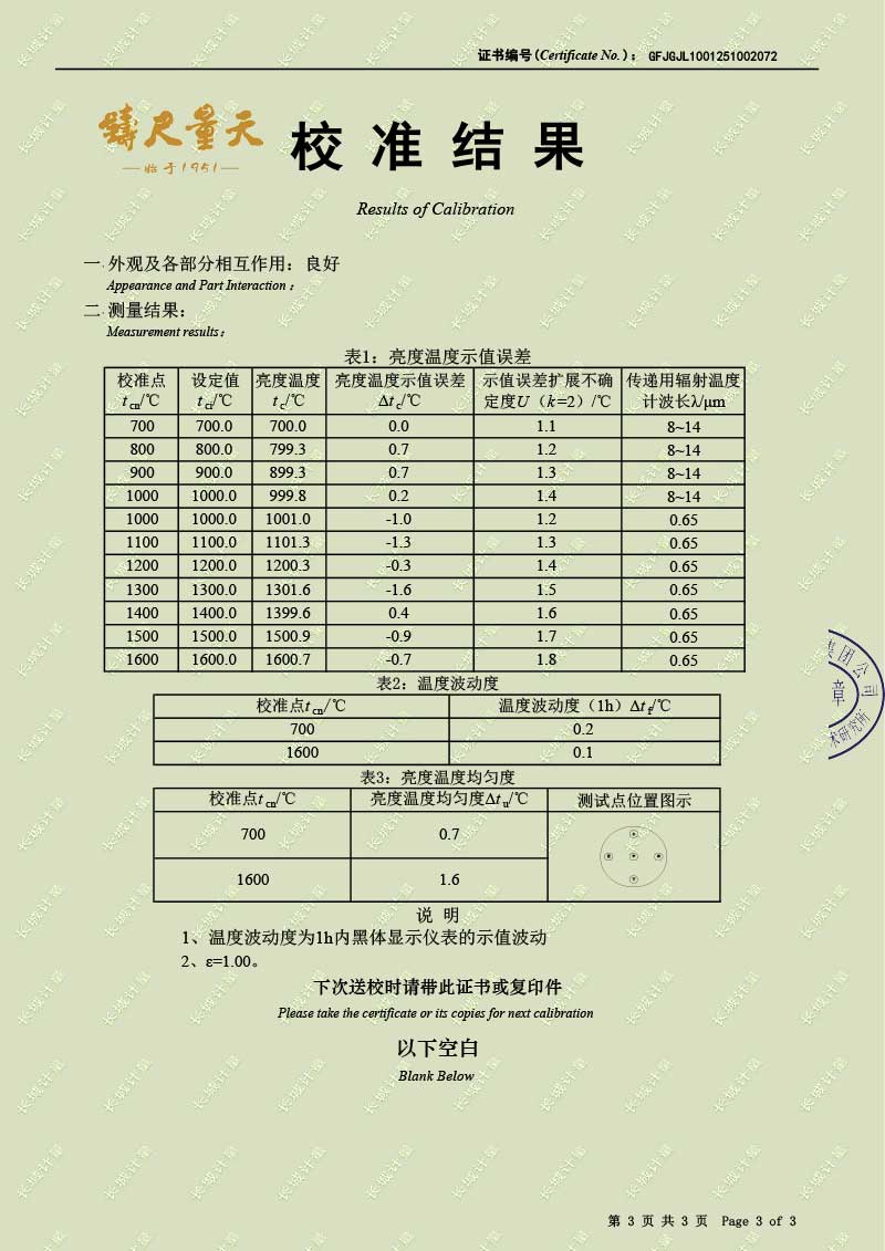 | 上一條:低溫液槽式黑體爐(-40-100℃)校準(zhǔn)證書 | 下一條:便攜式溫濕度檢定箱(-10-60℃)校準(zhǔn)證書 |