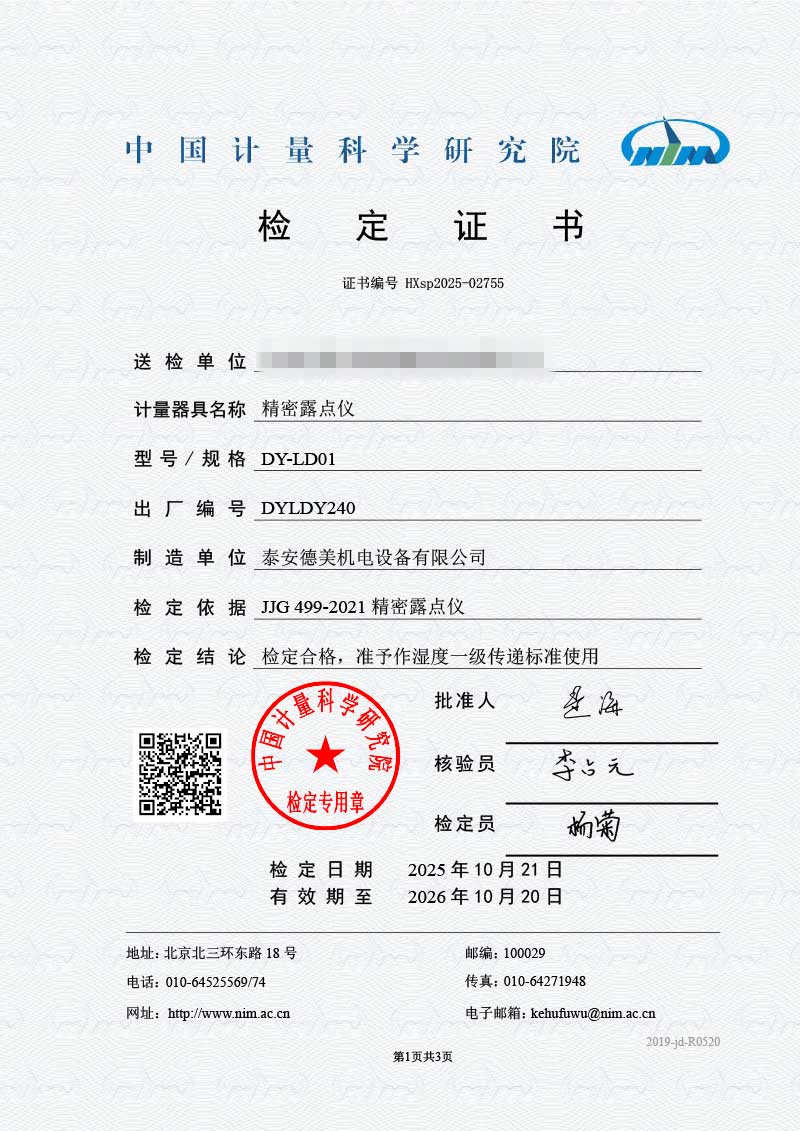 露點儀檢定證書 2025-10-30 本文被閱讀 98 次