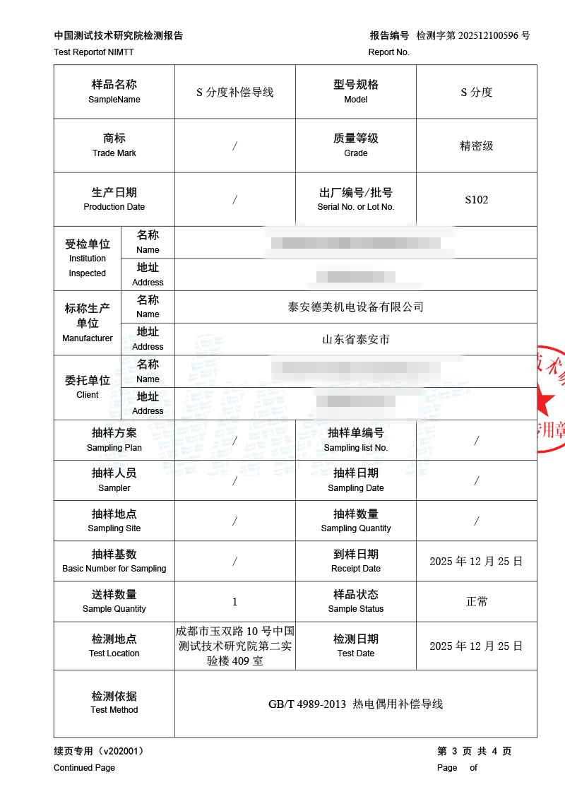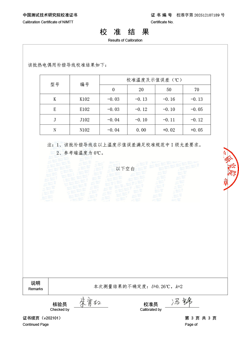 補(bǔ)償導(dǎo)線檢測(cè)、檢定、校準(zhǔn)報(bào)告 2026-1-4 本文被閱讀 603 次