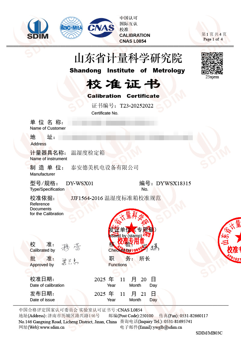 溫濕度檢定箱校準(zhǔn)證書 2025-11-25 本文被閱讀 852 次