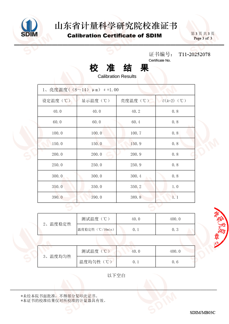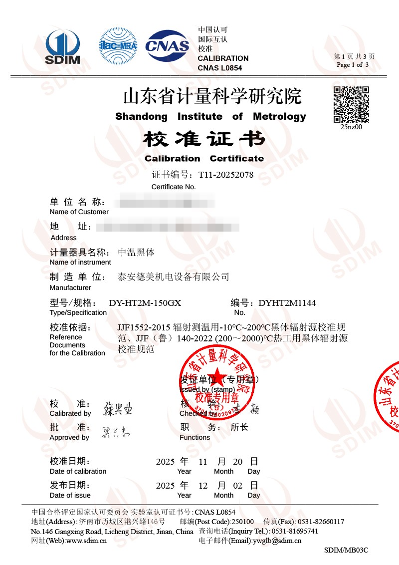 中溫黑體校準證書 2025-12-4 本文被閱讀 100 次