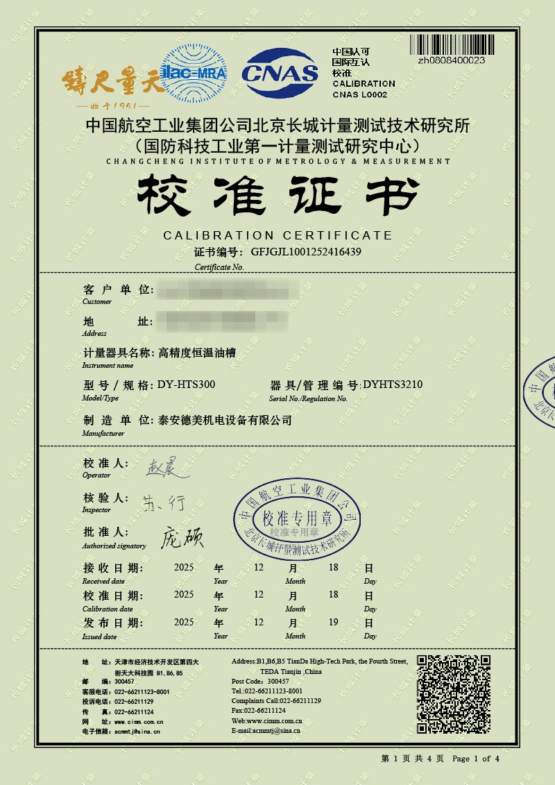 高精度恒溫油槽-校準(zhǔn)證書 2025-12-19 本文被閱讀 69 次