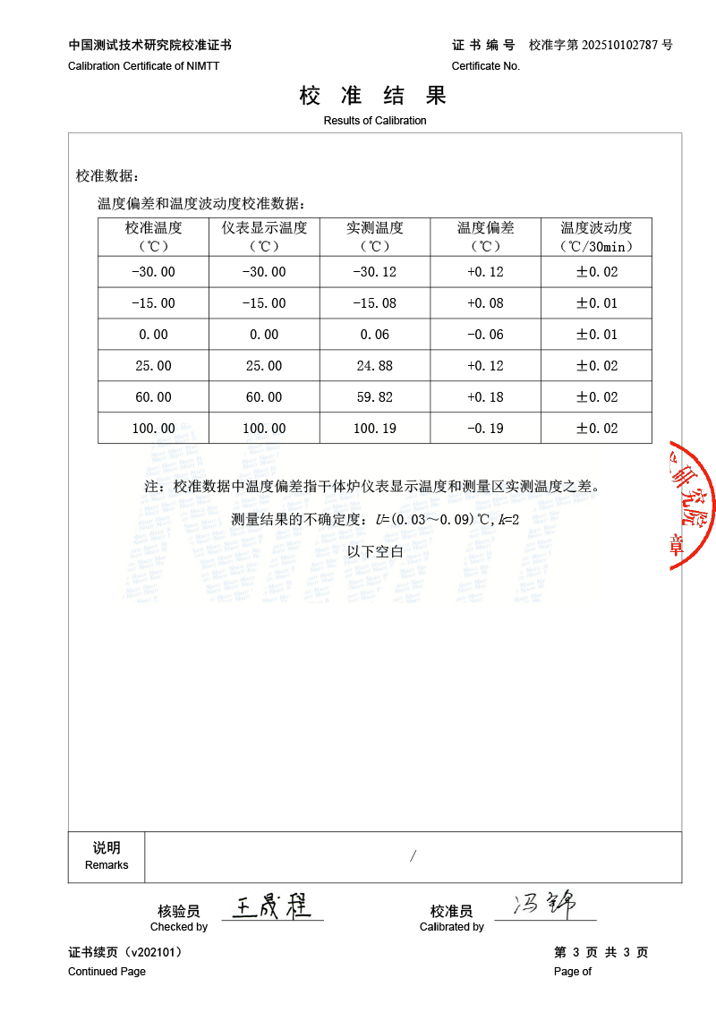 便攜式干體爐(-30-150℃)校準證書 2025-10-21 本文被閱讀 105 次