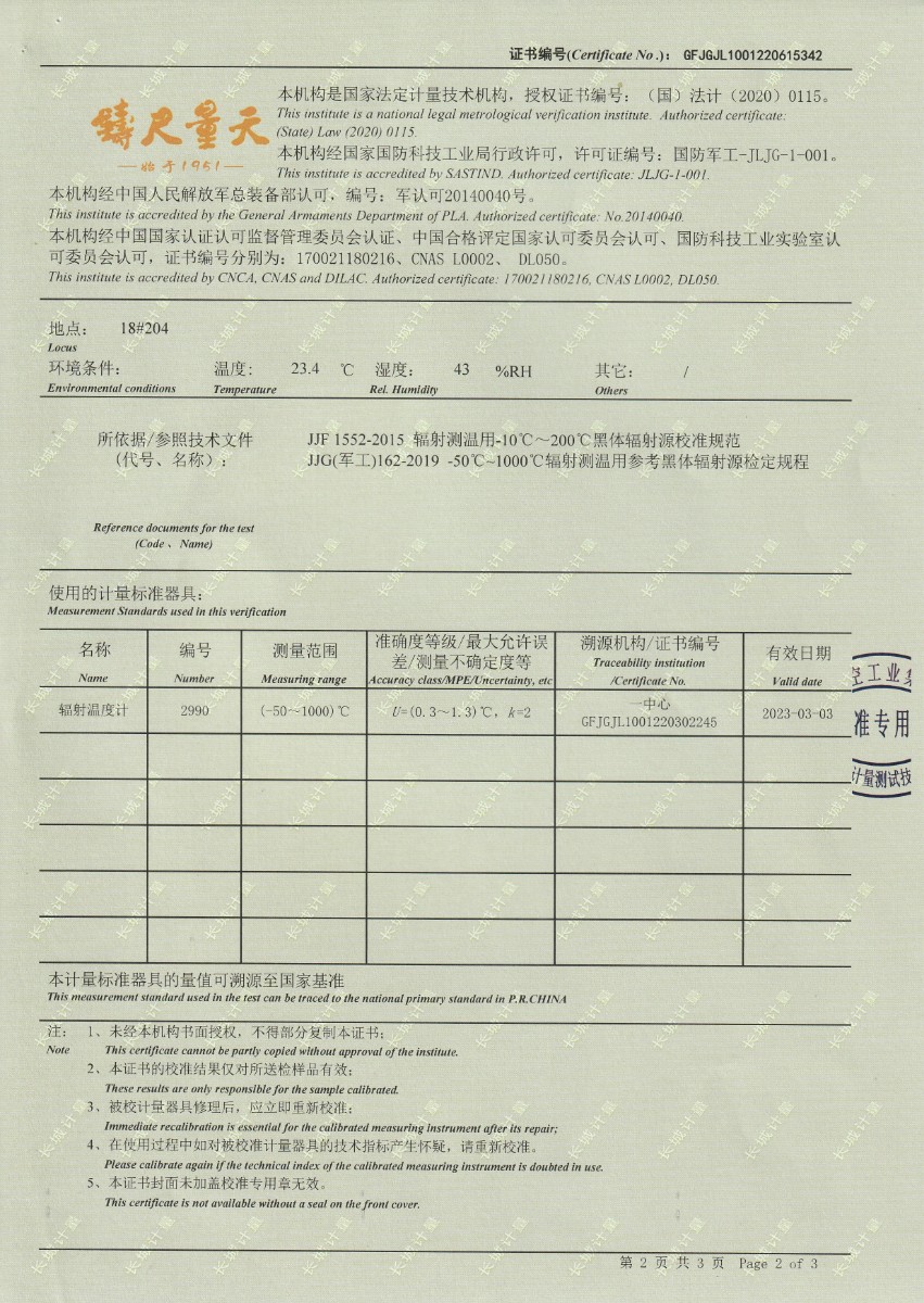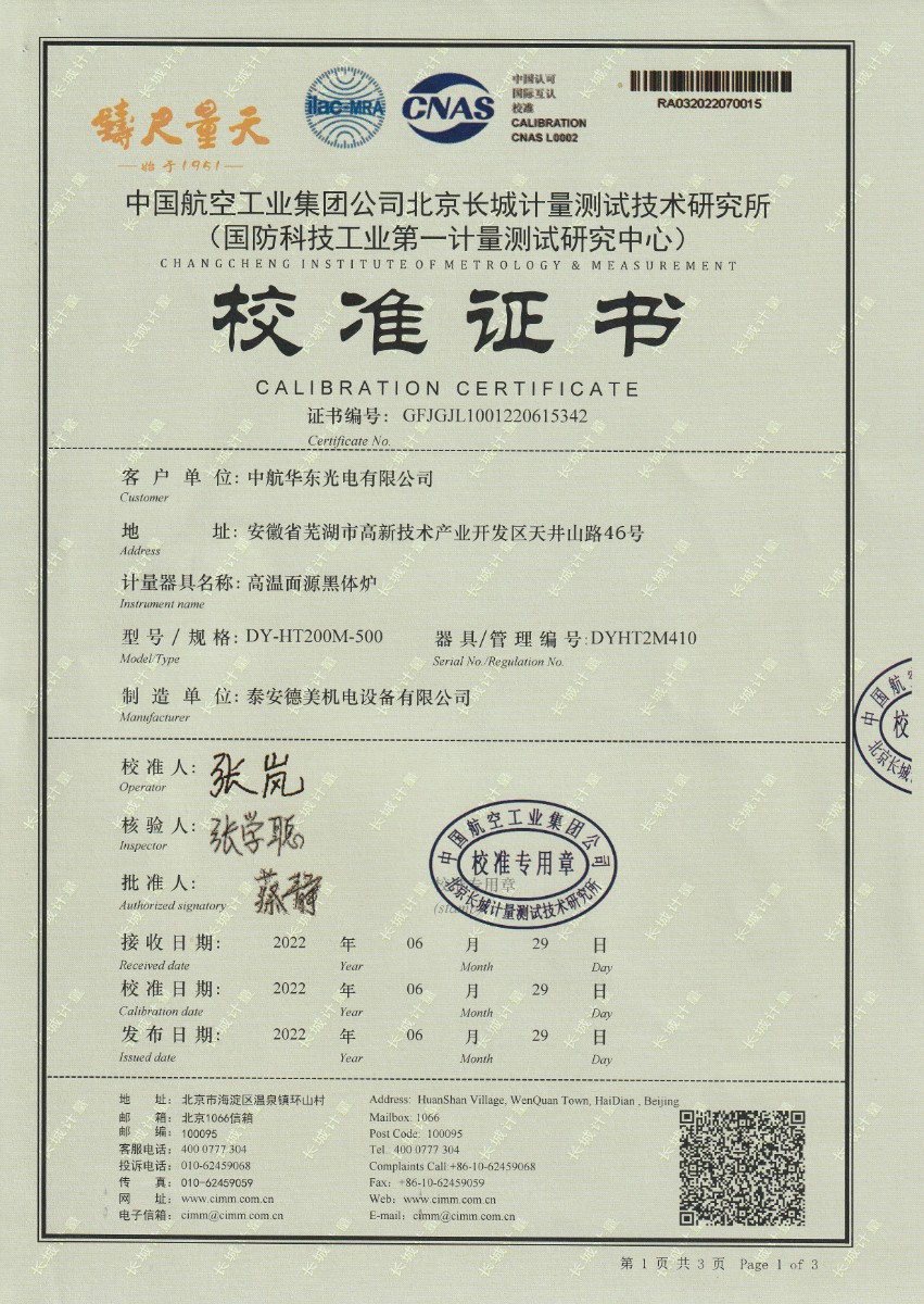 | 上一條:中國航空工業(yè)集團(tuán)公司沈陽空氣動(dòng)力研究所-黑體輻射源 | 下一條:高精度制冷恒溫槽(-80~100℃)校準(zhǔn)證書 |