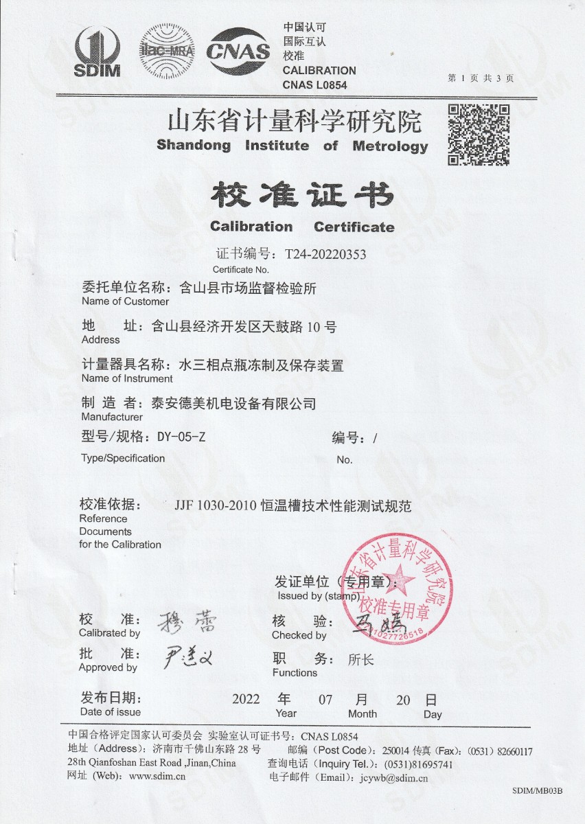 | 上一條:中航華東光電有限公司-低溫面源黑體爐 | 下一條:溫濕度檢定箱校準(zhǔn)證書 |