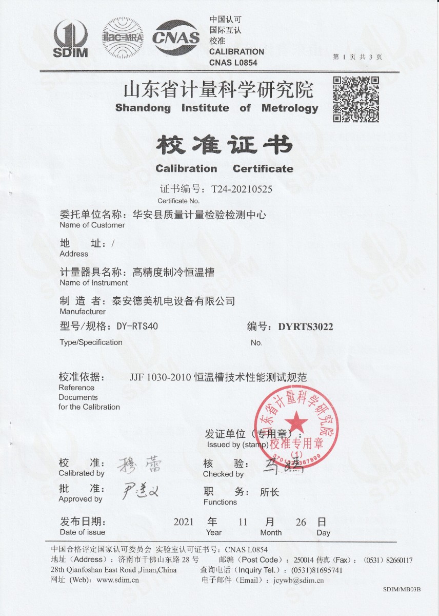 | 上一條:四川易豐國際計(jì)量檢測有限公司-黑體爐 | 下一條:便攜式干體爐(-30-150℃)校準(zhǔn)證書 |