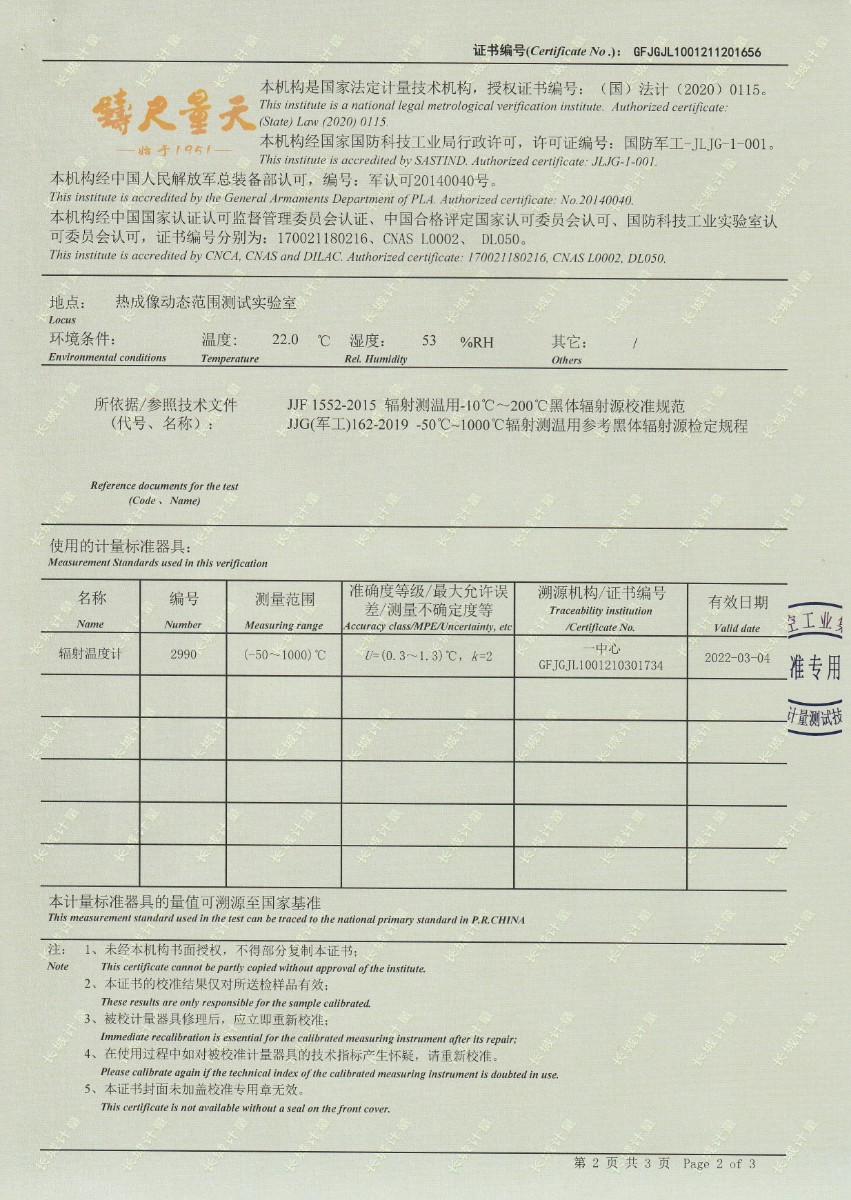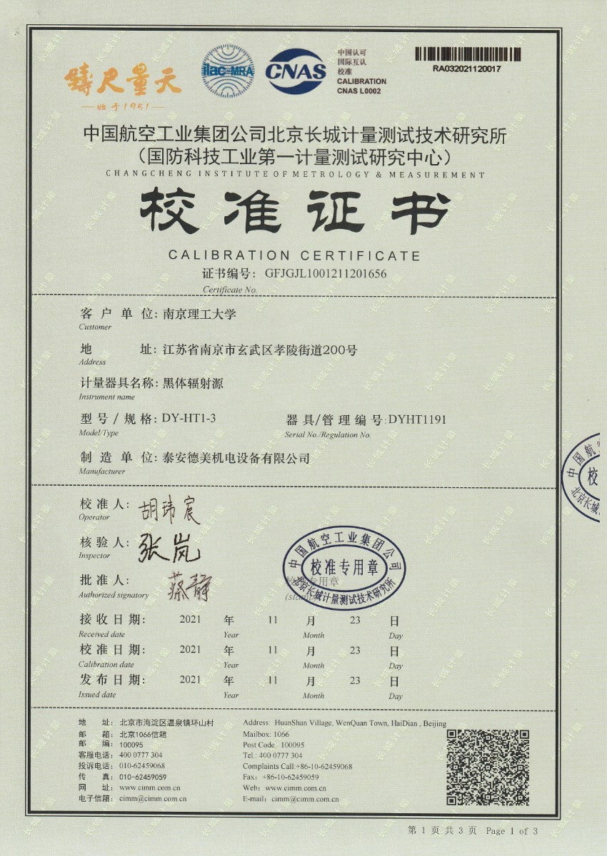 | 上一條:南京理工大學(xué)-黑體輻射源校準(zhǔn)證書10-60℃ | 下一條:便攜式干體爐(-30-150℃)校準(zhǔn)證書 |