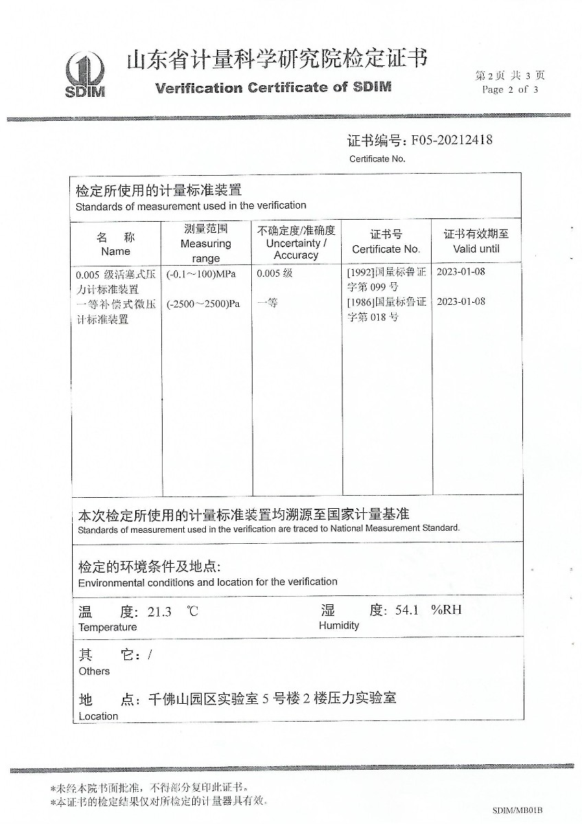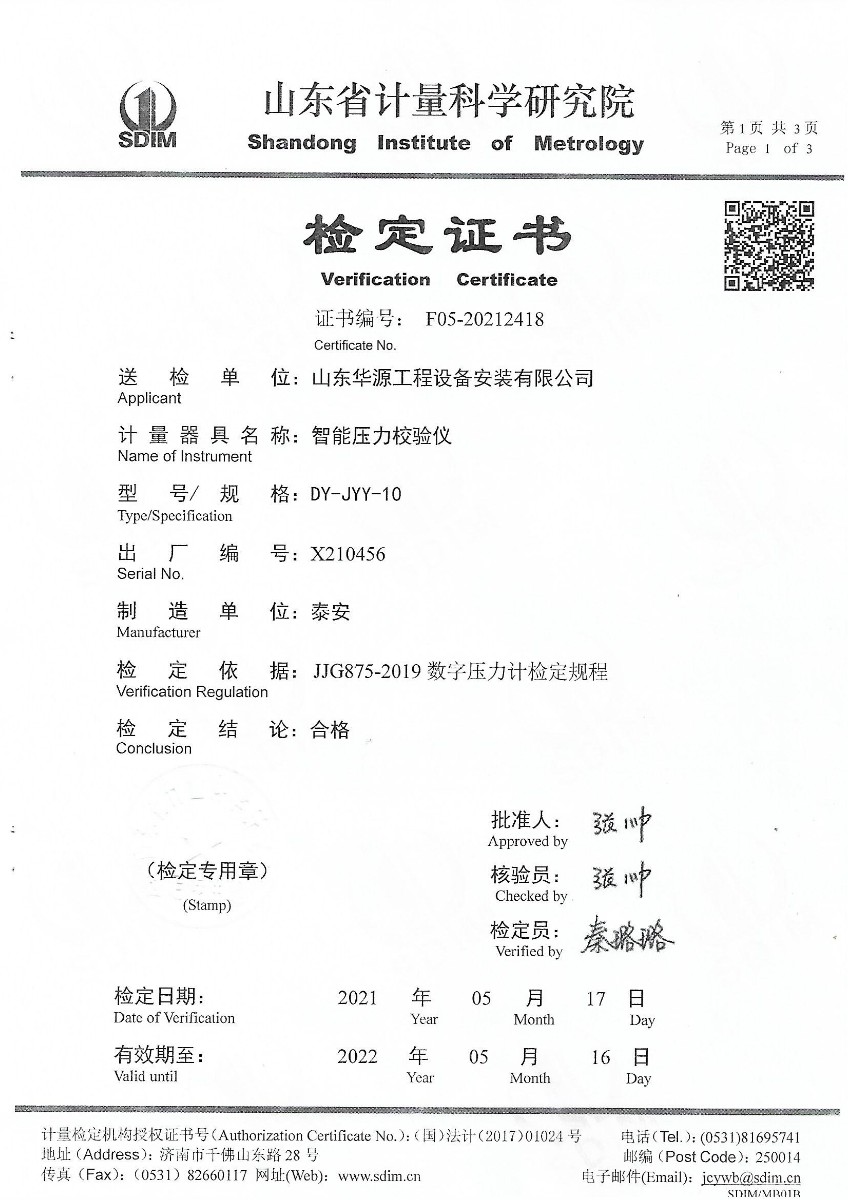 | 上一條:山東華源工程設(shè)備安裝有限公司-智能壓力校驗(yàn)儀X210455 | 下一條:便攜式干體爐(-30-150℃)校準(zhǔn)證書 |