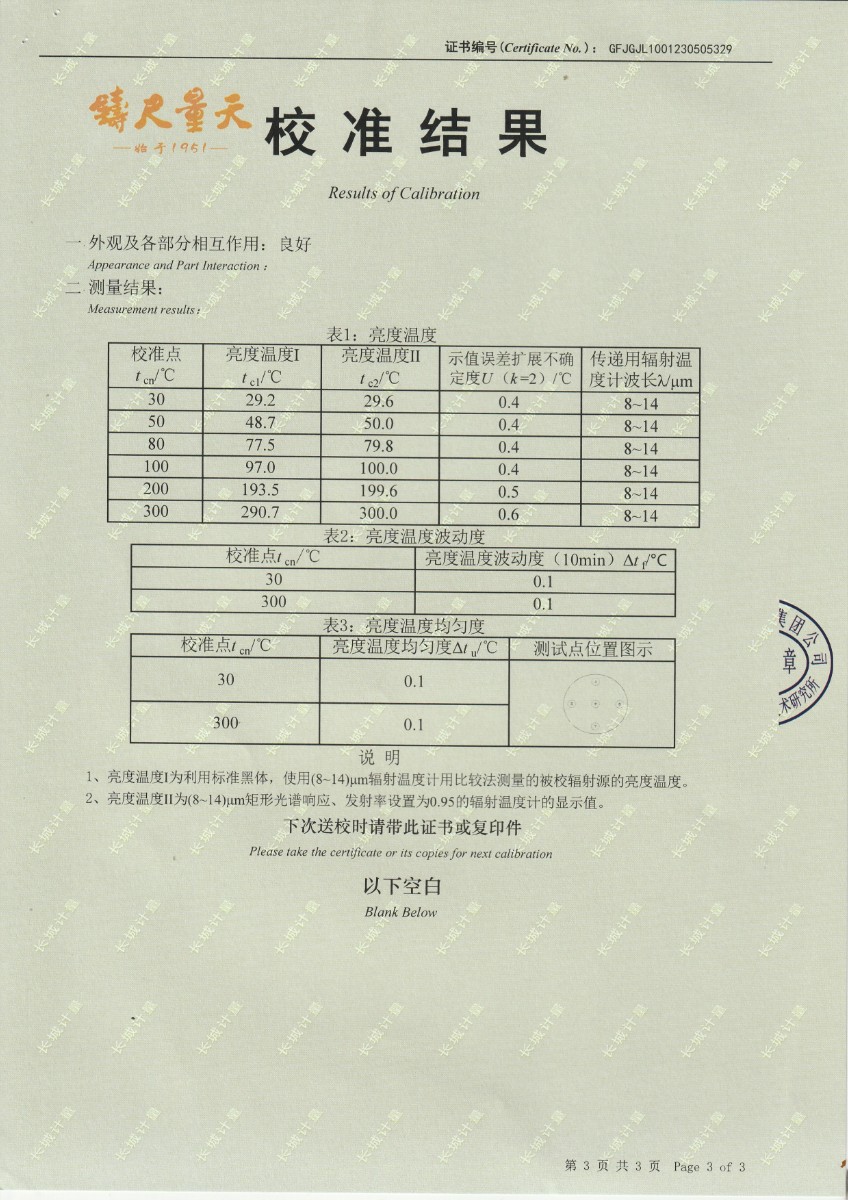 上一條:淮安捷泰新能源科技有限公司 黑體輻射源 校準證書下一條:便攜式干體爐(-30-150℃)校準證書